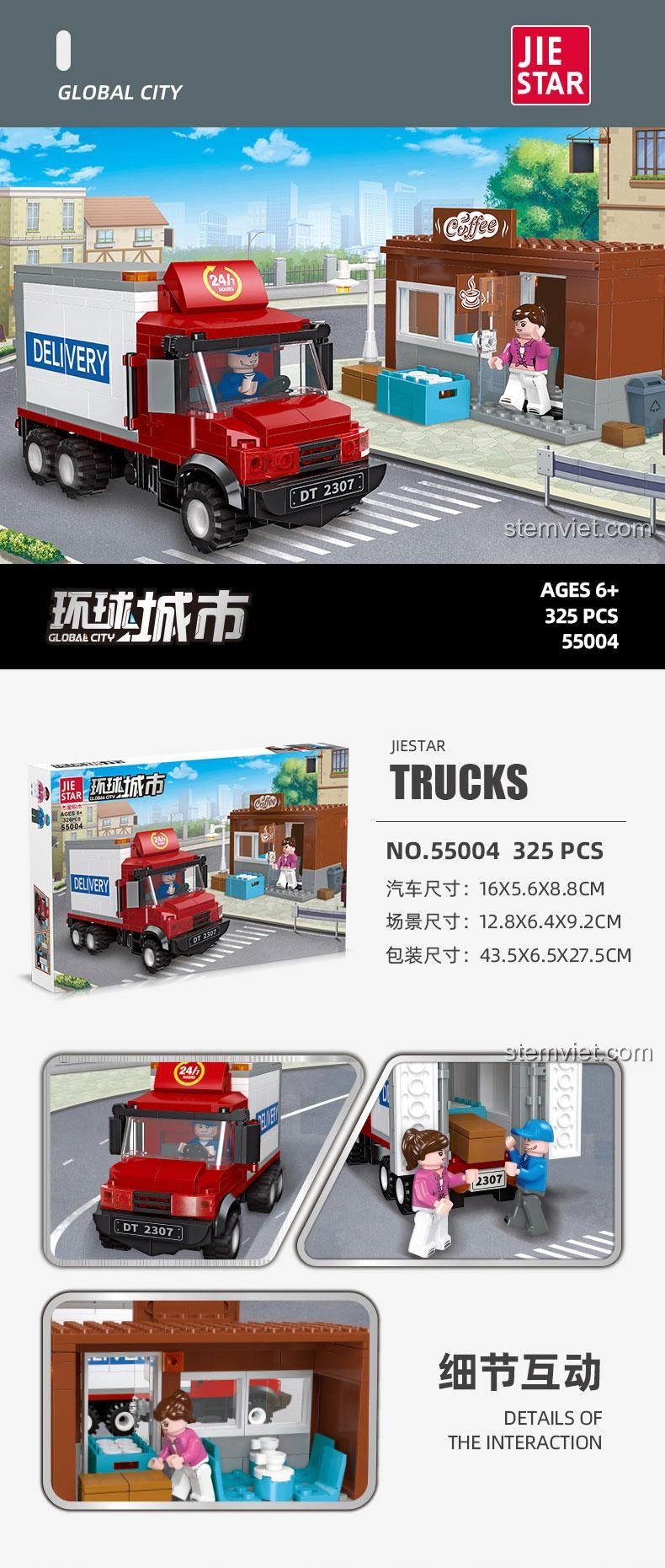 🚚 Khám Phá Cuộc Sống Đô Thị Cùng Bộ Đồ Chơi Xe Tải Giao Hàng JIESTAR 55004!