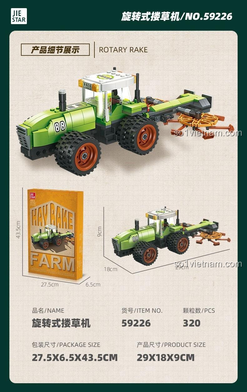 🚜 Khám Phá Thế Giới Nông Nghiệp Cùng bộ lắp ghép Máy Lượm Cỏ Xoay JIESTAR 59226!