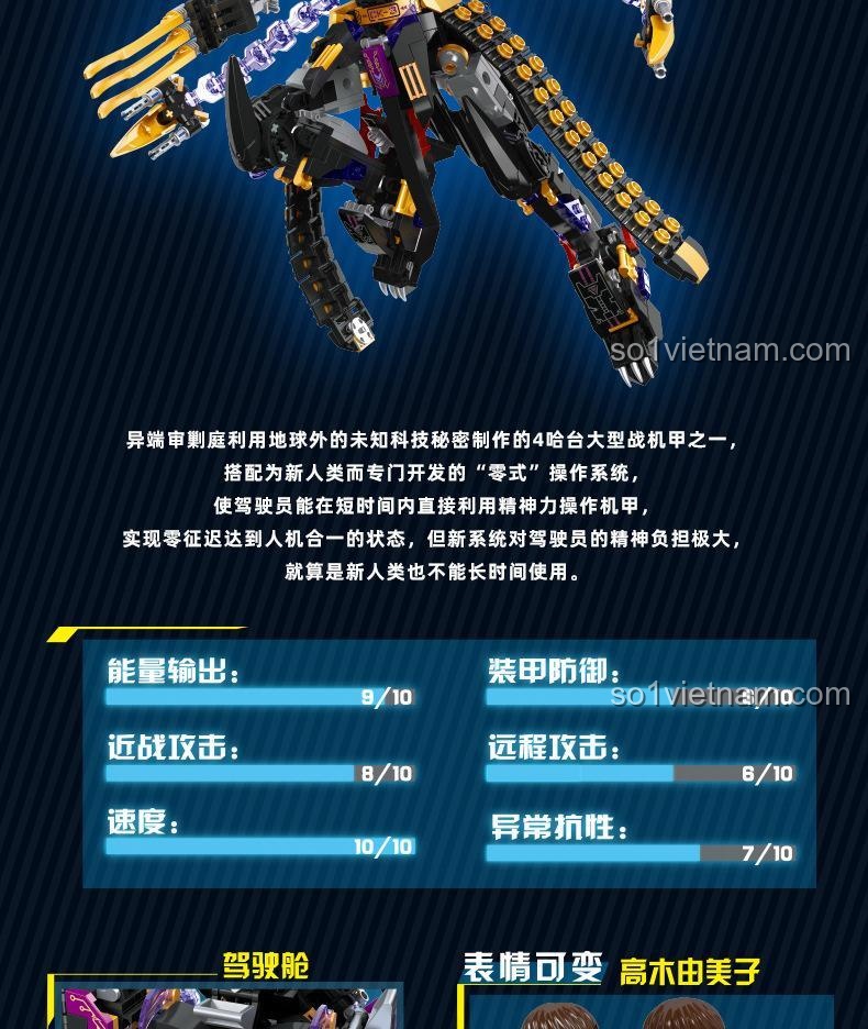 **Bộ xếp hình Robot Kỵ Sĩ Tai Ương** không chỉ đẹp mắt mà còn sở hữu nhiều tính năng đặc biệt, mang lại trải nghiệm chơi đầy hứng khởi. Mô hình được trang bị các khớp nối linh hoạt, cho phép bé tạo ra vô vàn tư thế chiến đấu dũng mãnh, từ tấn công cận chiến đến phòng thủ kiên cố. Buồng lái có thể mở ra, cho phép minifigure Takahashi Yumiko điều khiển mecha, tăng cường khả năng nhập vai và kể chuyện. Với sức mạnh đặc biệt được thể hiện qua các chỉ số ấn tượng như Năng lượng đầu ra 9/10, Giáp phòng thủ 8/10, Tấn công cận chiến 8/10, Tốc độ 10/10, **đồ chơi lắp ráp Mecha Kỵ Sĩ Tai Ương** này thực sự là một cỗ máy chiến đấu đáng gờm. Bé sẽ được thỏa sức sáng tạo các kịch bản chiến đấu, phát triển tư duy chiến lược và kỹ năng giải quyết vấn đề.