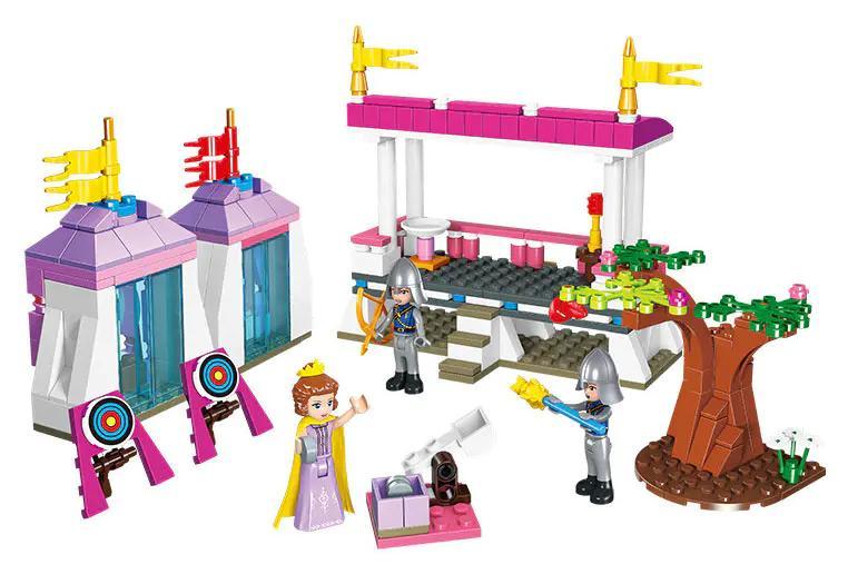 Bộ lắp ghép JIESTAR 20405 Nữ Hoàng Jelena: Sân Tập Hoàng Gia nổi bật với thiết kế tinh tế, lấy cảm hứng từ những câu chuyện cổ tích lãng mạn. Các chi tiết được phối màu hài hòa, chủ đạo là gam màu hồng, tím, trắng và xanh dương, tạo nên một không gian sân tập hoàng gia vô cùng sống động và bắt mắt. Bé sẽ thích mê với mô hình các lều trại lộng lẫy, khu vực huấn luyện bắn cung được tái hiện chân thực, cùng với cây cổ thụ xanh tươi mang đậm nét thần tiên. Hai nhân vật minifigure đi kèm, bao gồm Nữ hoàng Jelena và một hiệp sĩ, sẽ giúp bé thỏa sức sáng tạo nên những câu chuyện phiêu lưu hấp dẫn.