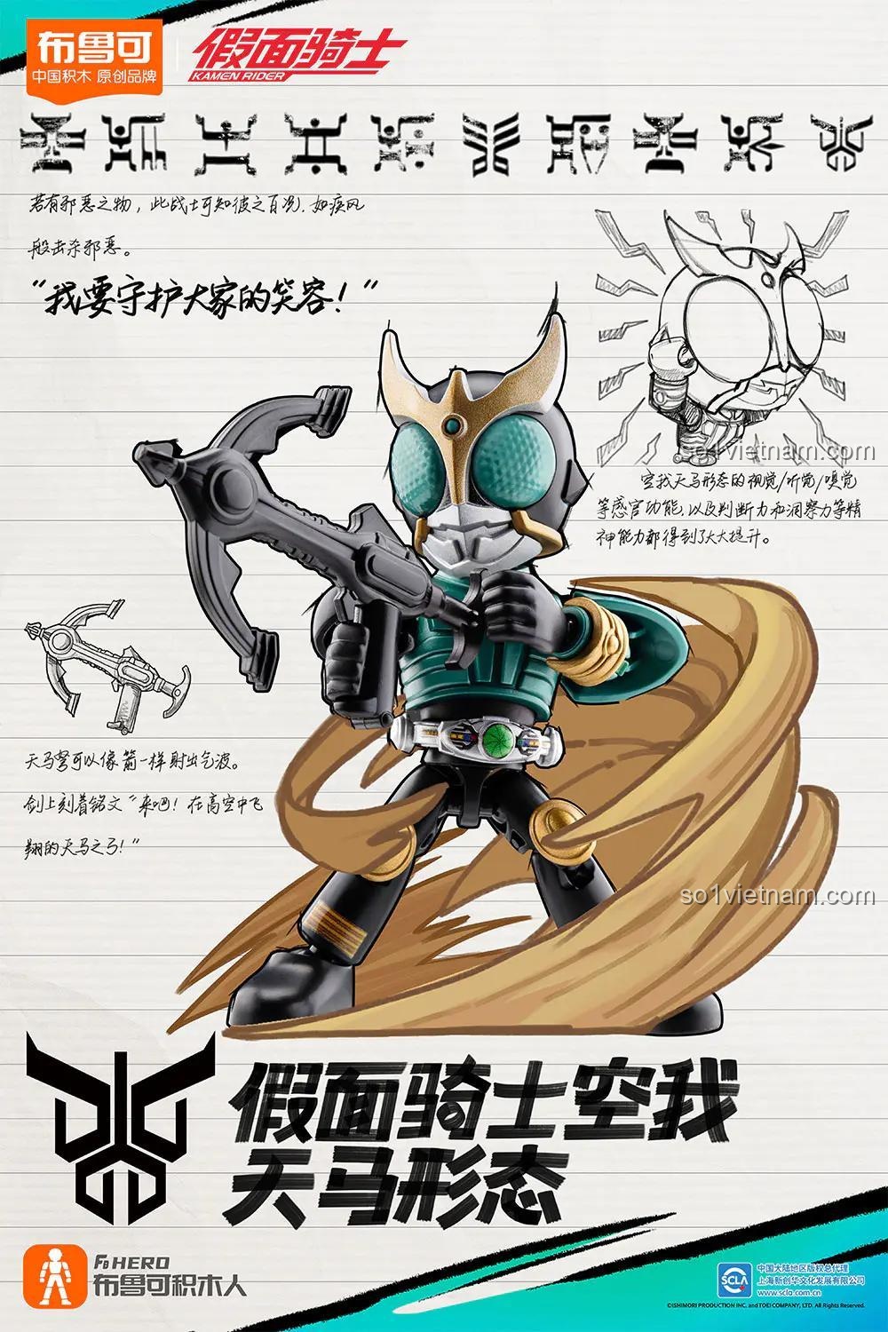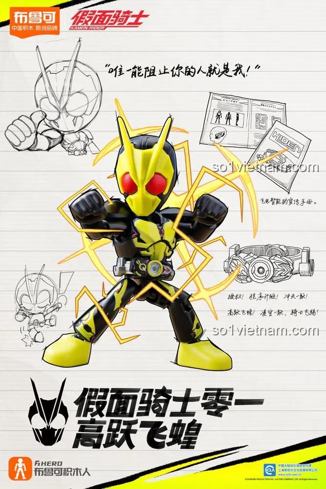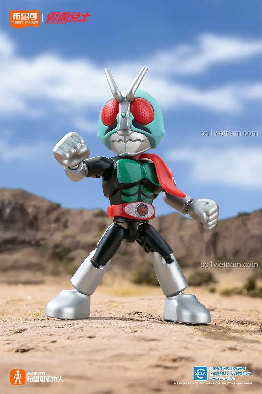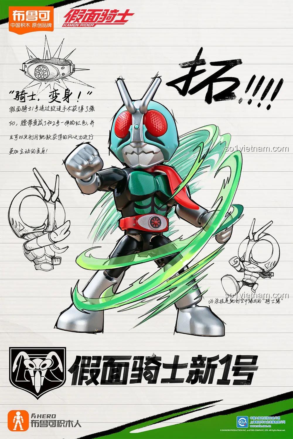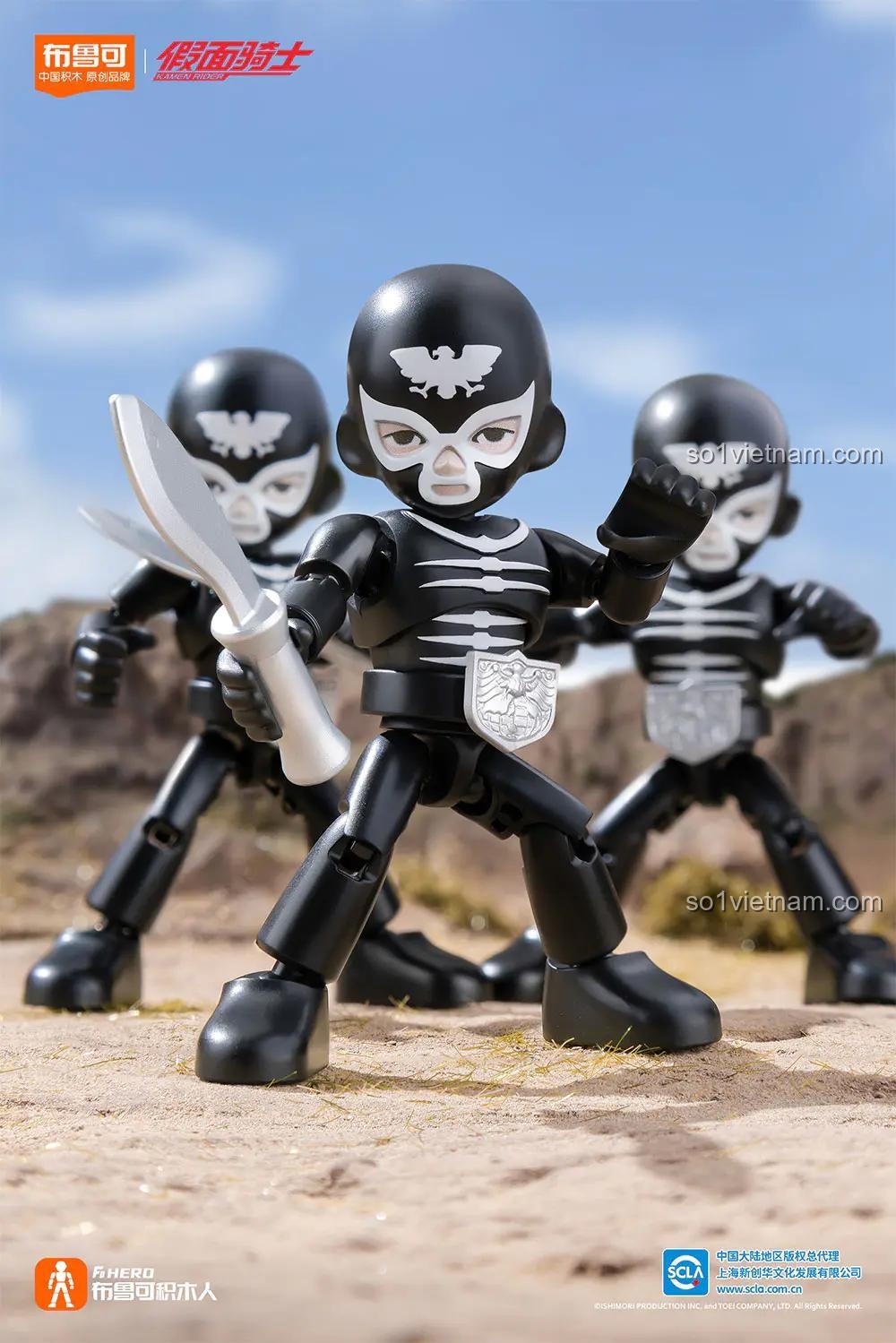Bộ lắp ghép Kamen Rider 74301 của 布鲁可BLOKEES bao gồm 9 nhân vật khác nhau, bao gồm các anh hùng Kamen Rider và Shocker Combatant.