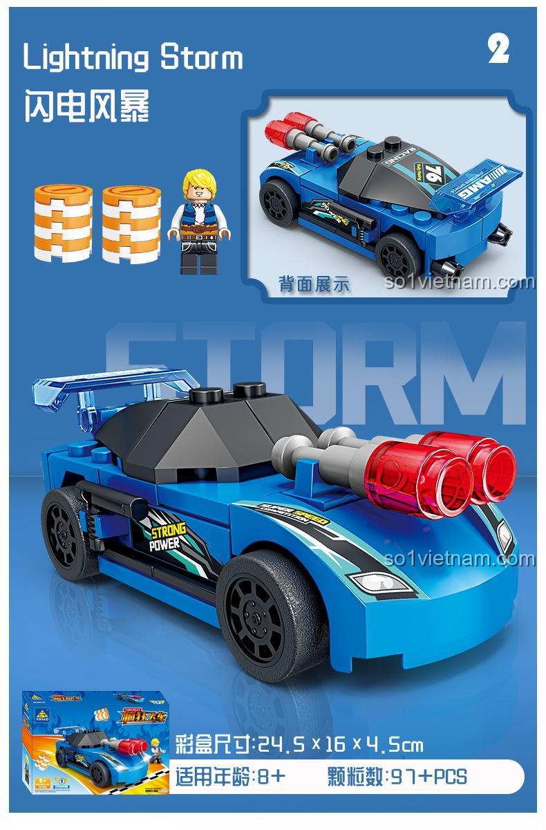 Mỗi mẫu xe đi kèm với một minifigure lái xe và các phụ kiện nhỏ như cờ hoặc biển báo giao thông, giúp bé dễ dàng nhập vai và tạo ra những câu chuyện đua xe của riêng mình. Các chi tiết của xe được thiết kế để mô phỏng chân thực các loại xe đua, từ hệ thống ống xả kép mạnh mẽ của Lightning Storm đến bộ giảm xóc hầm hố của Fire Nova. Kiểu chi tiết tương thích LEGO® giúp bé có thể dễ dàng kết hợp các mảnh ghép này với những bộ đồ chơi khác mà bé đang có, mở rộng khả năng sáng tạo và xây dựng một thế giới đồ chơi rộng lớn hơn. Đây thực sự là một bộ đồ chơi đa năng, kích thích trí tưởng tượng và khả năng giải quyết vấn đề của bé.