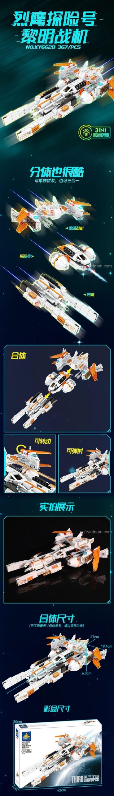 Bộ lắp ghép KAZI KY6628 Chiến cơ Bình Minh Liệt Ưng Thám Hiểm (367 mảnh ghép) – Khám Phá Vũ Trụ và Lắp Được 3 Kiểu