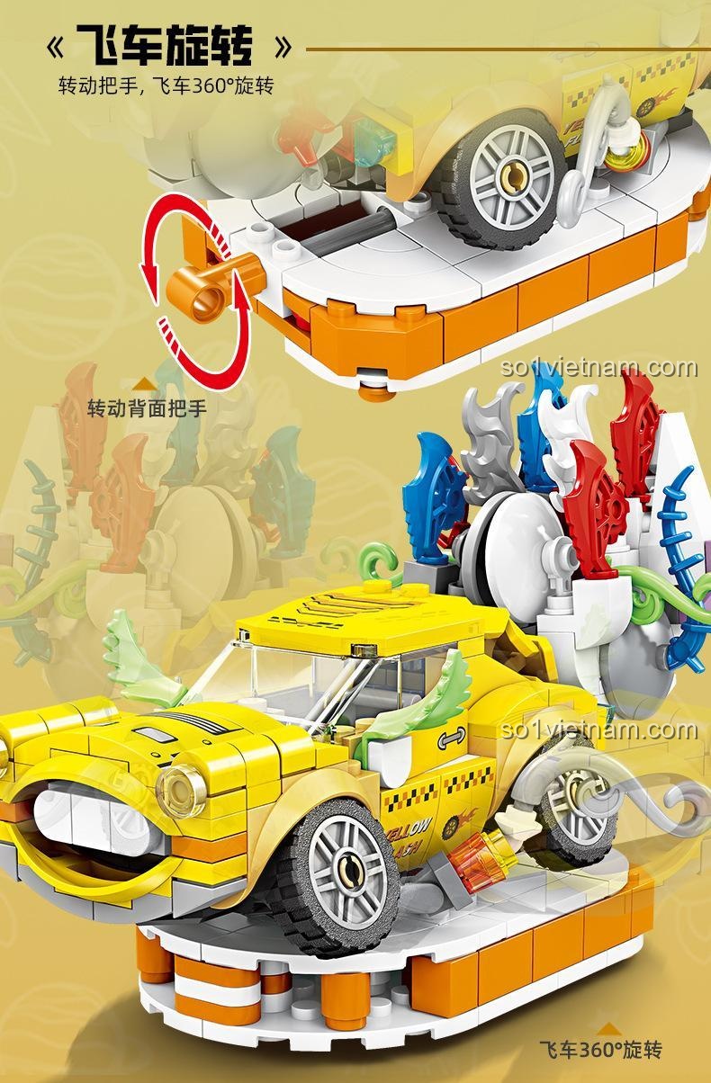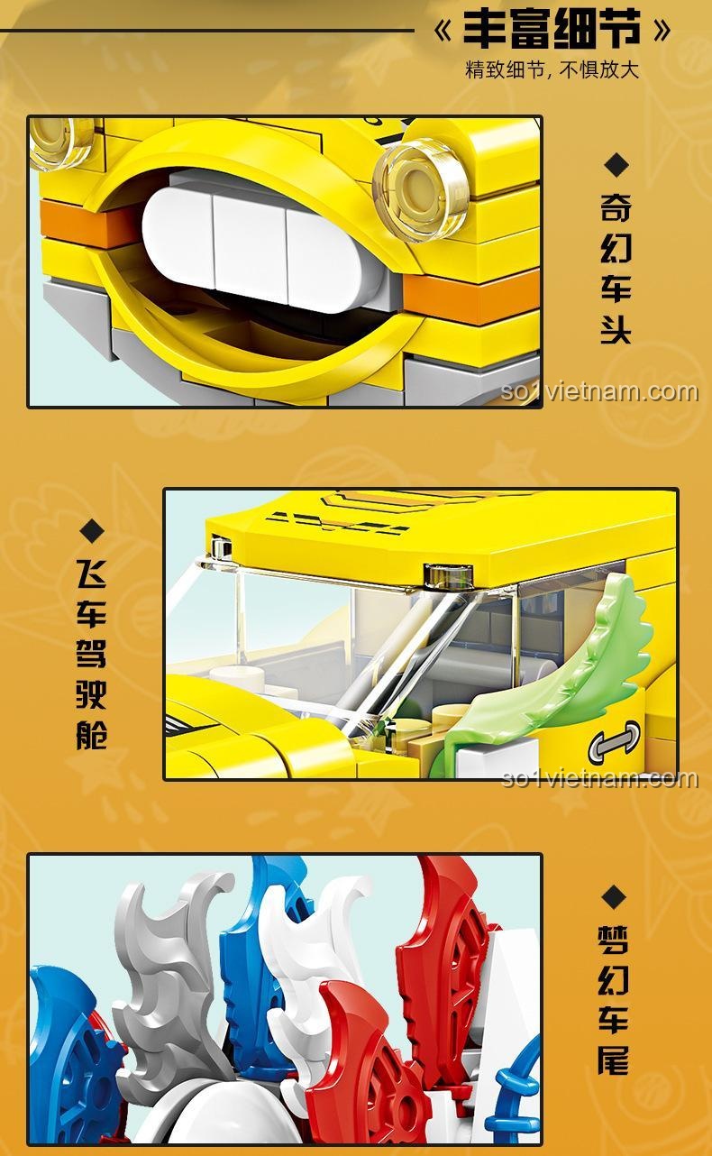 Bộ lắp ghép KAZI KY81148 không chỉ thu hút bởi vẻ ngoài ấn tượng mà còn bởi những tính năng thú vị. Điểm nhấn đặc biệt chính là cơ chế xoay 360 độ, cho phép bé tùy chỉnh góc nhìn và tạo ra những màn trình diễn tốc độ ngoạn mục. Mặc dù không đi kèm động cơ, nhưng bé hoàn toàn có thể tự do sáng tạo và thêm vào các bộ phận động cơ pin (cần mua thêm) để biến “Cơn Lốc Vàng” thành một chiếc xe điều khiển từ xa đầy mạnh mẽ. Kiểu chi tiết tương thích LEGO® giúp bé dễ dàng làm quen và kết hợp với các bộ lắp ghép khác, mở rộng khả năng sáng tạo không giới hạn.