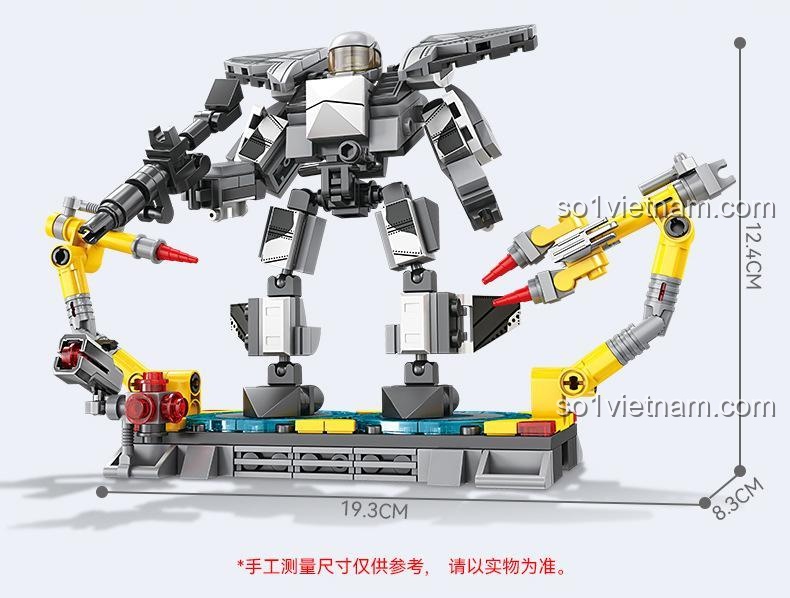 Bộ lắp ghép KAZI KY84131 Cơ Giáp Thông Minh J-20 gây ấn tượng mạnh mẽ với thiết kế vô cùng tinh xảo và hiện đại. Mỗi mảnh ghép đều được chăm chút tỉ mỉ, tạo nên một mô hình Cơ Giáp J-20 KAZI với vẻ ngoài hầm hố, mạnh mẽ. Với màu sắc chủ đạo là xám, trắng và đen, điểm xuyết thêm các chi tiết vàng, mô hình toát lên vẻ ngoài công nghệ cao, đúng chất một chiến binh tương lai. Kích thước mô hình sau khi hoàn thiện là 19.3cm chiều dài, 8.3cm chiều rộng và 12.4cm chiều cao, vừa vặn để bé dễ dàng cầm nắm và trưng bày. Đặc biệt, các khớp nối cầu linh hoạt cho phép Mecha J-20 BOZHI tạo ra vô số tư thế chiến đấu, từ tấn công dũng mãnh đến phòng thủ kiên cường. Vũ khí mô phỏng được thiết kế chân thực, tăng thêm tính hấp dẫn cho mỗi trận chiến. Bé sẽ được trải nghiệm cảm giác tự tay lắp ráp từng chi tiết, từ đó hiểu rõ hơn về cấu trúc và chức năng của một cỗ máy chiến đấu hiện đại.