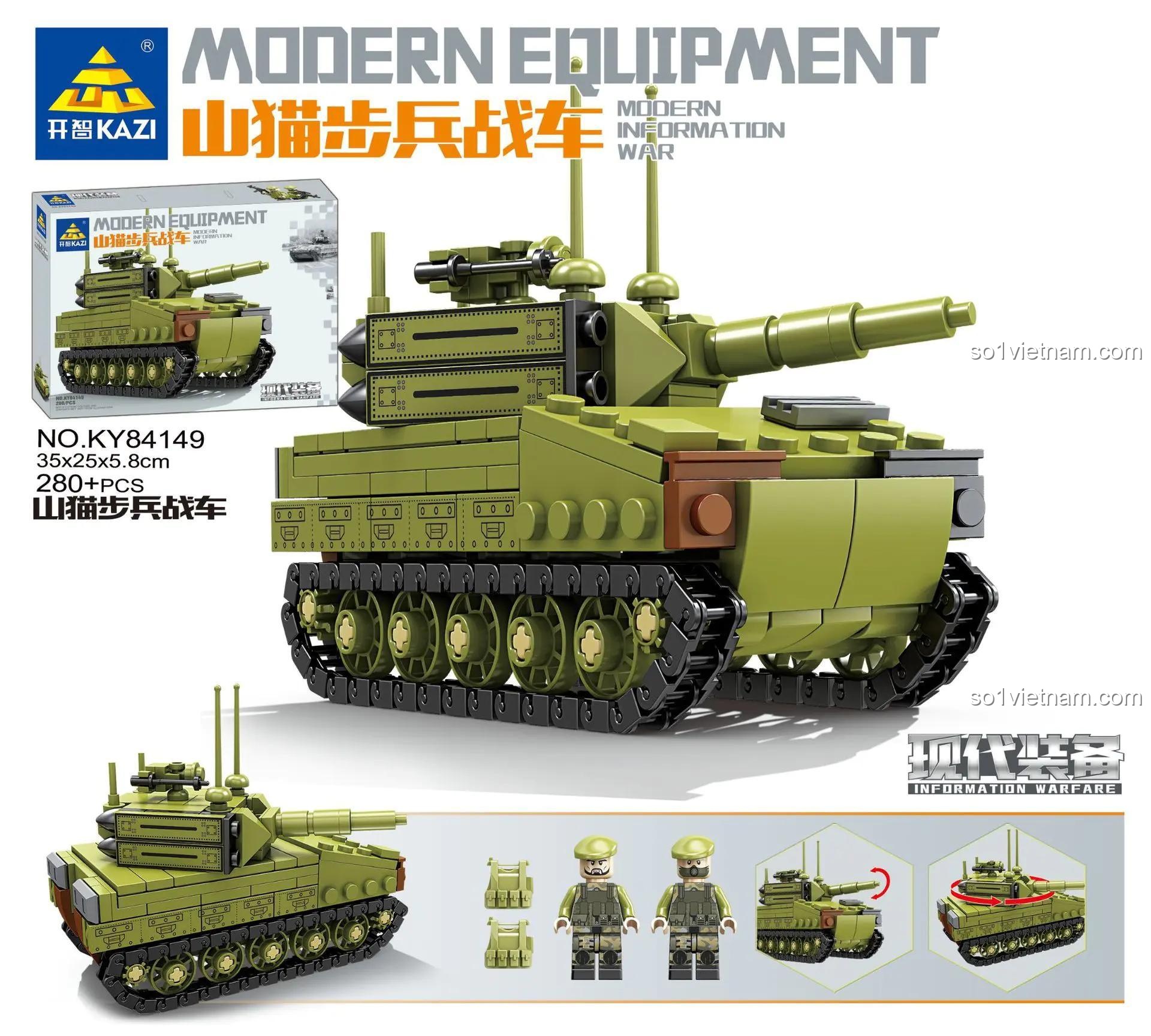 Bộ lắp ghép KAZI KY84149 Xe Chiến Đấu Bộ Binh Lynx (280 mảnh) – Sức Mạnh Quân Sự và Tháp Pháo Xoay 360 Độ