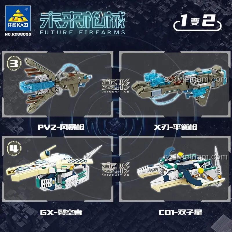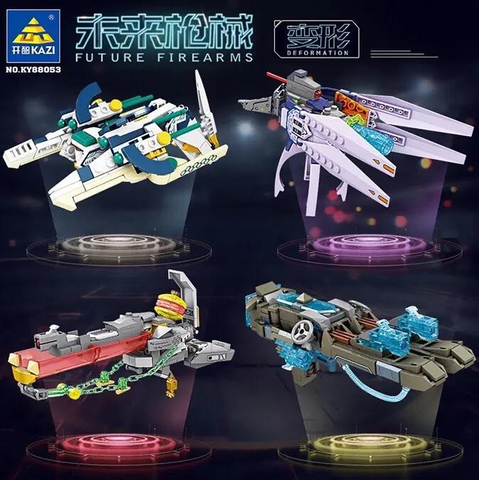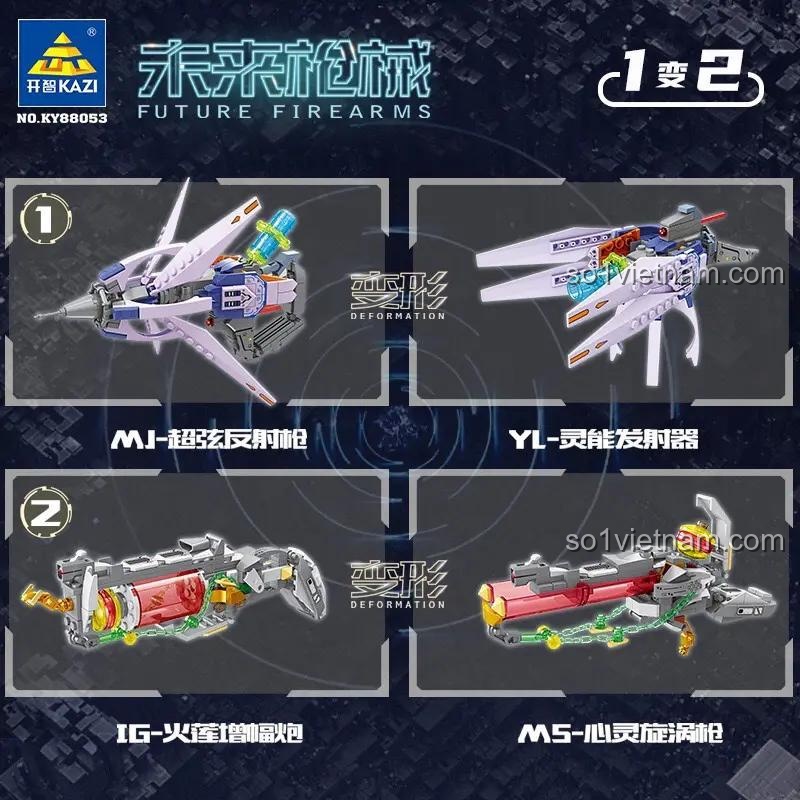 Bộ KAZI KY88053 cho phép bé lắp ráp thành 4 mẫu vũ khí tương lai khác nhau.