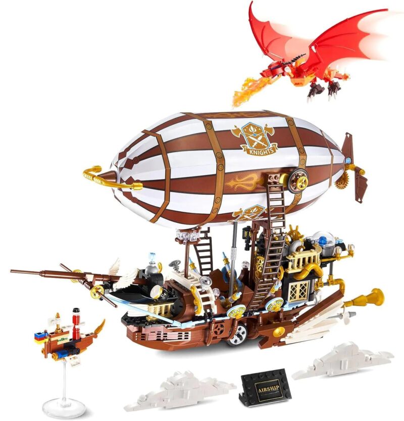 Với 1283 chi tiết tỉ mỉ, bộ lắp ghép này không chỉ là một món đồ chơi, mà còn là một thử thách thú vị, giúp bé rèn luyện sự khéo léo, kiên nhẫn và khả năng giải quyết vấn đề. Mô hình khinh khí cầu mang đậm phong cách Steampunk, với tông màu nâu và trắng chủ đạo, các chi tiết bánh răng, ống khói, thang leo và đặc biệt là cánh đuôi xoay bằng bánh răng, bánh xe đáy có thể thu vào, đèn pha cường độ cao và pháo hạng nặng, tất cả tạo nên một vẻ ngoài vừa cổ điển vừa hiện đại, vừa mạnh mẽ vừa tinh tế.