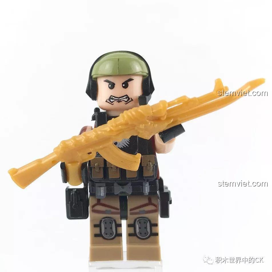 Các minifigure trong bộ này có thiết kế độc đáo với biểu cảm kép, giúp bé thay đổi cảm xúc nhân vật. Đặc biệt, chúng còn được trang bị mũ và mặt nạ tích hợp, cùng với các loại vũ khí đa dạng như súng trường, súng bắn tỉa và súng ngắn, tăng thêm tính chân thực cho trò chơi.