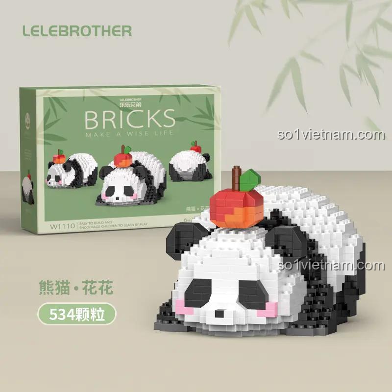 Bộ lắp ghép LELE BROTHER W1110 Mô hình Gấu Trúc Hoa Hoa đội táo (534 chi tiết) – Đáng Yêu Tinh Xảo và Có Đèn LED Trang Trí