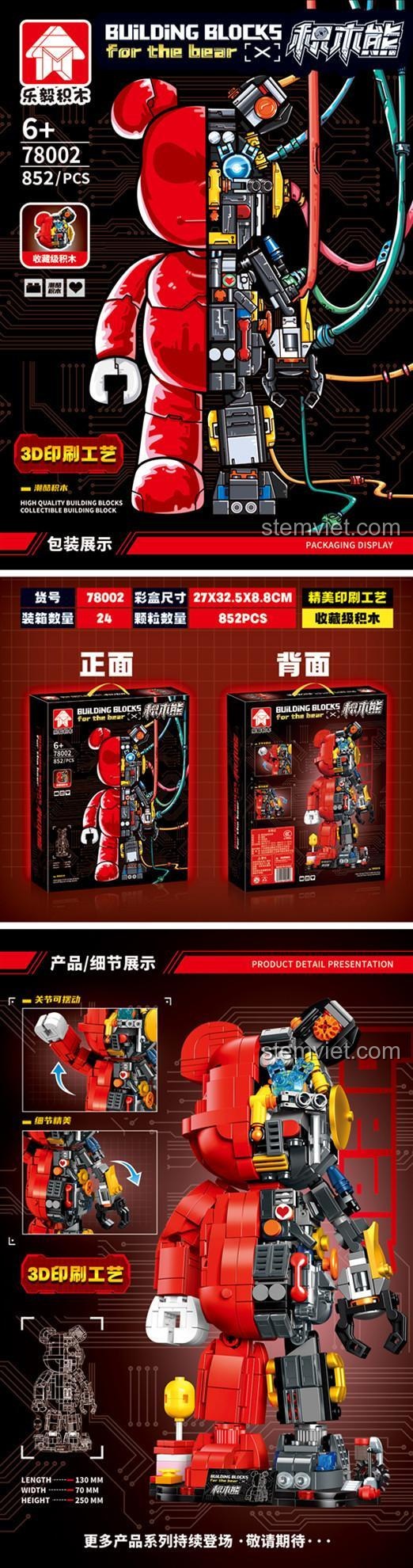 Bộ lắp ghép LeYi Bricks 78002 Mô hình Gấu Bearbrick Cơ Khí (852 mảnh) – Kiệt Tác Cơ Khí & Thiết Kế Giải Phẫu Độc Đáo