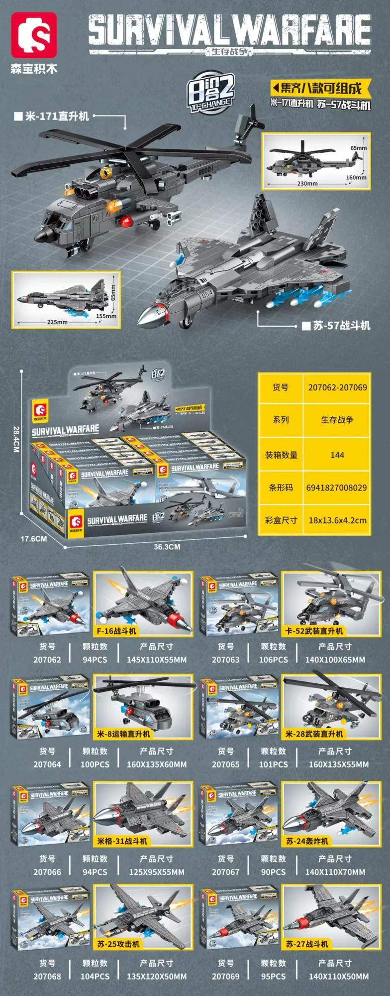 Bộ SEMBO 207066 Máy Bay Chiến Đấu F-16 cho phép bé lắp ráp được tới 8 mô hình quân sự khác nhau.