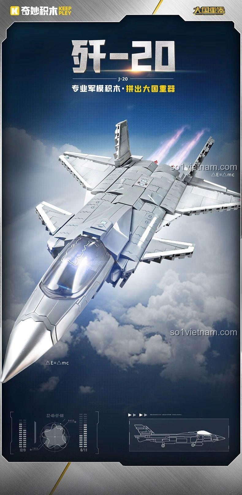 Bộ Lắp Ghép Máy Bay Chiến Đấu J-20 Keeppley 23027 Tỉ Lệ 1:44 (732 Mảnh)