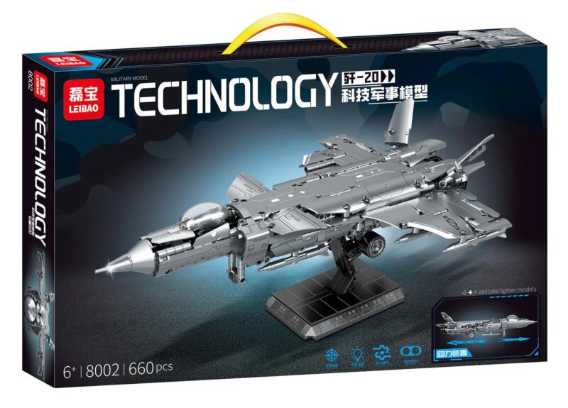 Bộ lắp ghép LEIBAO 8002 tái hiện một cách xuất sắc vẻ ngoài uy lực của Máy bay chiến đấu J-20. Với 660 chi tiết được chế tác tỉ mỉ, mô hình sở hữu màu xám kim loại chủ đạo, tạo cảm giác mạnh mẽ, hiện đại và chân thực như phiên bản thật. Từng đường nét trên cánh, thân máy bay, khoang lái và động cơ đều được mô phỏng chi tiết, thể hiện sự đầu tư trong thiết kế của LEIBAO. Đặc biệt, bộ sản phẩm còn đi kèm giá đỡ trưng bày, giúp chiếc máy bay chiến đấu J-20 của bé có thể “cất cánh” và khoe dáng một cách ấn tượng trên bàn học hay kệ trưng bày. Kích thước sau khi lắp ráp tuy chưa được công bố chi tiết, nhưng với số lượng mảnh ghép lớn, mô hình hứa hẹn sẽ có kích thước đáng kể, đủ để bé tự hào khoe với bạn bè.