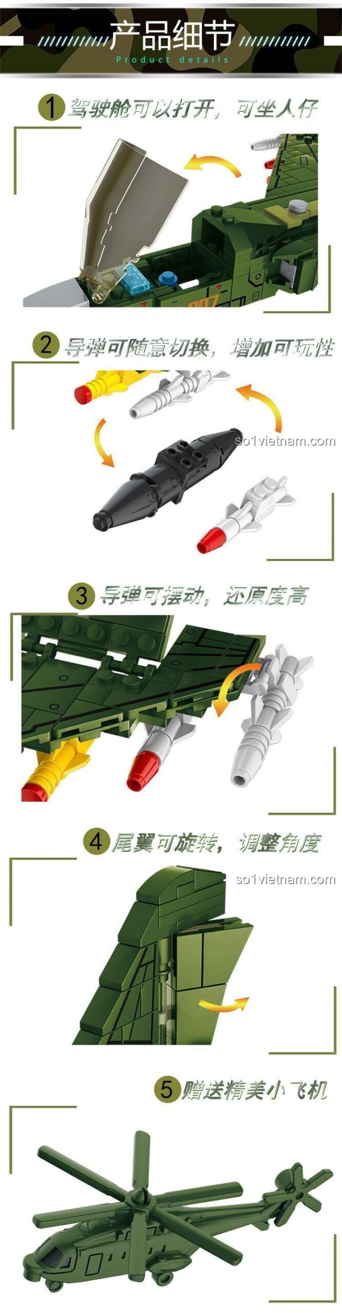 Với bộ lắp ghép này, bé có thể thỏa sức sáng tạo và khám phá thế giới máy bay quân sự mà không cần lo lắng về chi phí hay chất lượng. Đó là sự đầu tư xứng đáng cho sự phát triển của bé.