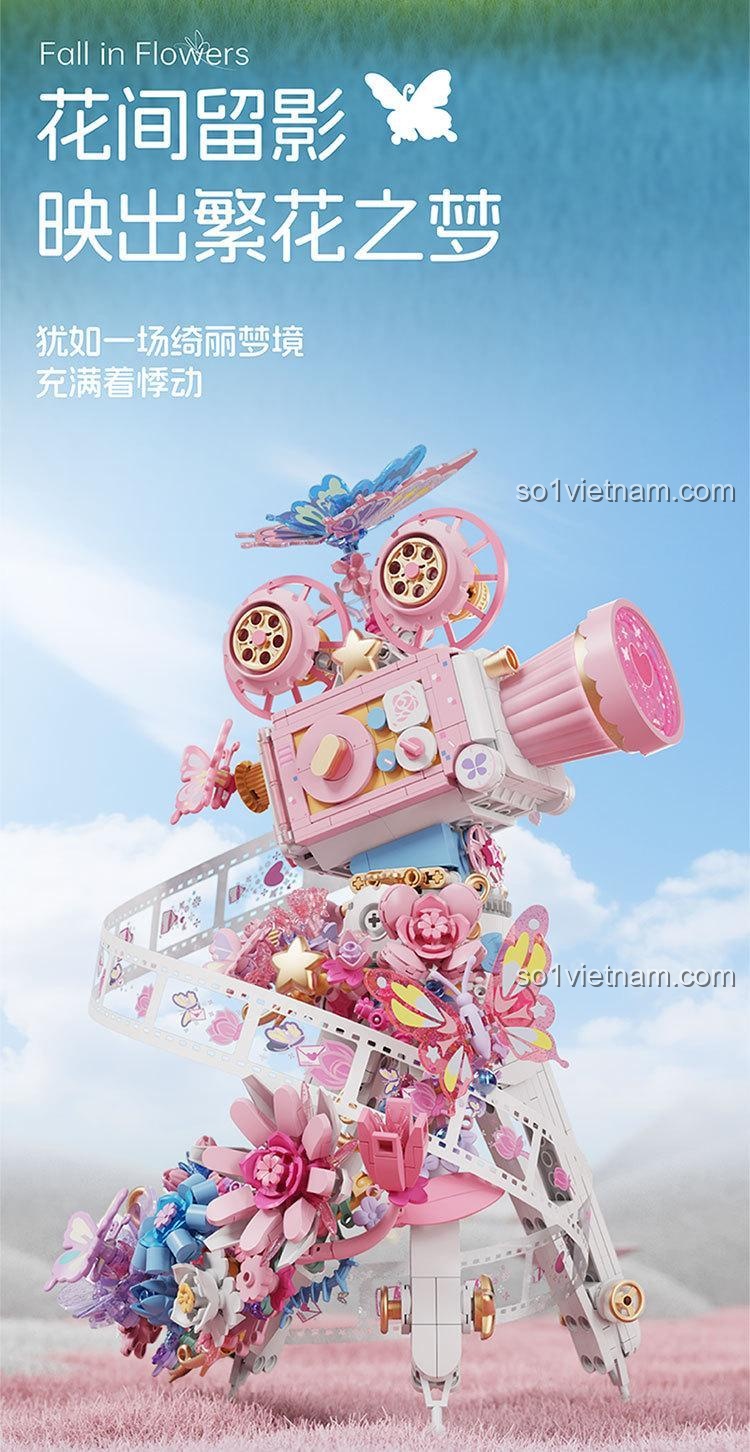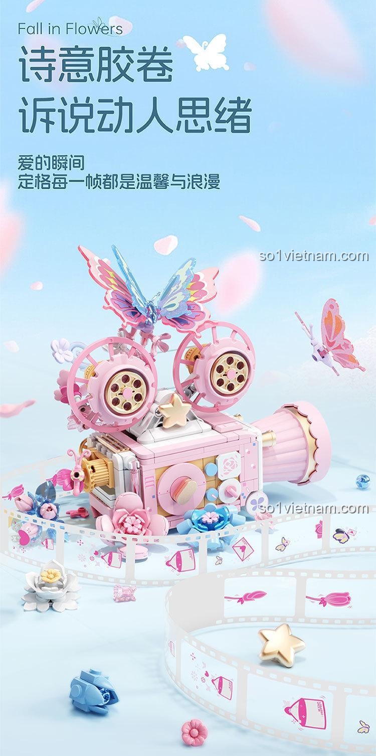 Bộ Lắp Ghép Máy Quay Phim Cổ Điển Hoa Hồng Bướm SEMBO 611106 (1109 Mảnh)