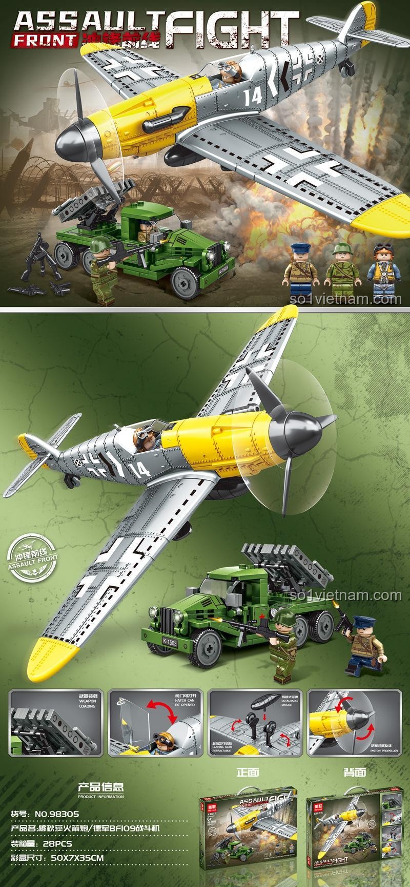 Bộ lắp ghép MEILIAN 98305 Mô hình Pháo phản lực Katyusha và Máy bay chiến đấu BF109 Đức (554 mảnh ghép) – Chiến Tranh Khốc Liệt và Lắp Được 2 Kiểu