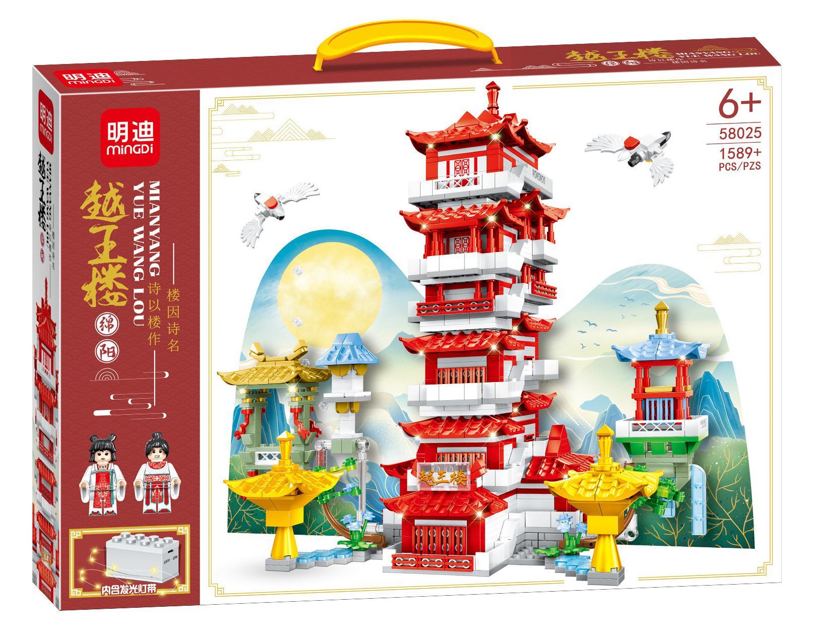 Chào mừng các bậc phụ huynh và các bé đến với thế giới kiến trúc cổ điển đầy mê hoặc! Hôm nay, Kho đồ chơi trẻ em hân hạnh giới thiệu bộ lắp ghép Việt Vương Lầu Mingdi 58025 – một kiệt tác thu nhỏ tái hiện công trình lịch sử nổi tiếng của Trung Quốc. Việt Vương Lầu, hay còn gọi là Lầu Việt Vương, là một trong Tứ Đại Danh Lầu của Trung Hoa, được xây dựng lần đầu vào thời nhà Đường (thế kỷ 7). Tòa nhà này không chỉ là một biểu tượng kiến trúc mà còn là nơi gắn liền với nhiều câu chuyện lịch sử và thi ca, khơi gợi trí tưởng tượng và niềm đam mê khám phá cho các bé.