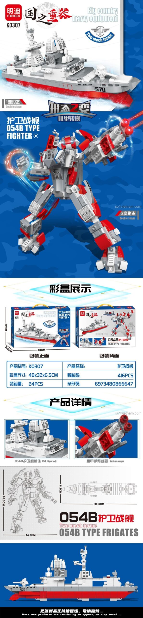Bộ lắp ghép Mingdi K0307 Chiến hạm hộ vệ 054B (416 mảnh) – Biến Hình Độc Đáo & Lắp Được 2 Kiểu