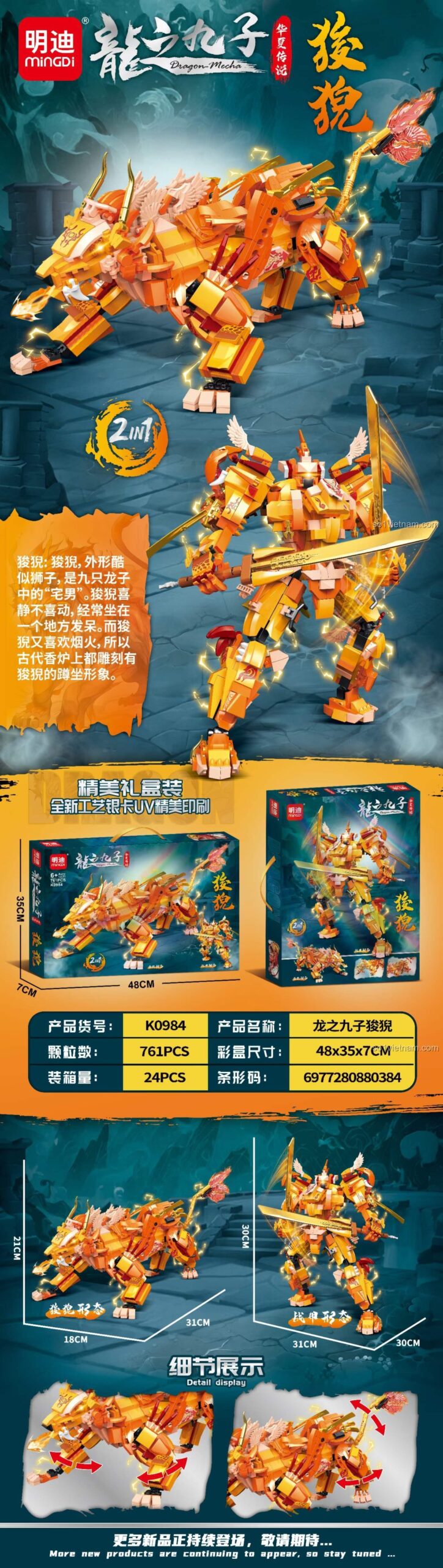 Bộ lắp ghép Mingdi K0984 Cửu Tử Long Vương Toan Nghê (761 mảnh) – Thần Thú Biến Hình và Lắp Được 2 Kiểu