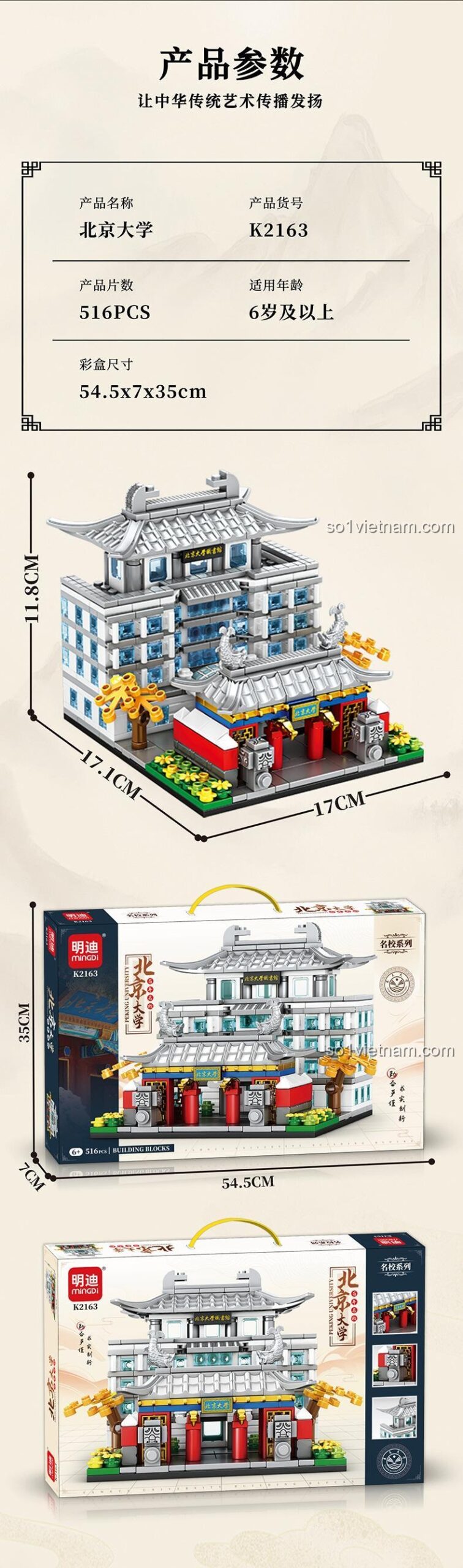 bộ lắp ghép Mingdi K2163 Mô hình Đại học Bắc Kinh (516 mảnh ghép) – Kiến Trúc Tinh Xảo và Mô hình kiến trúc