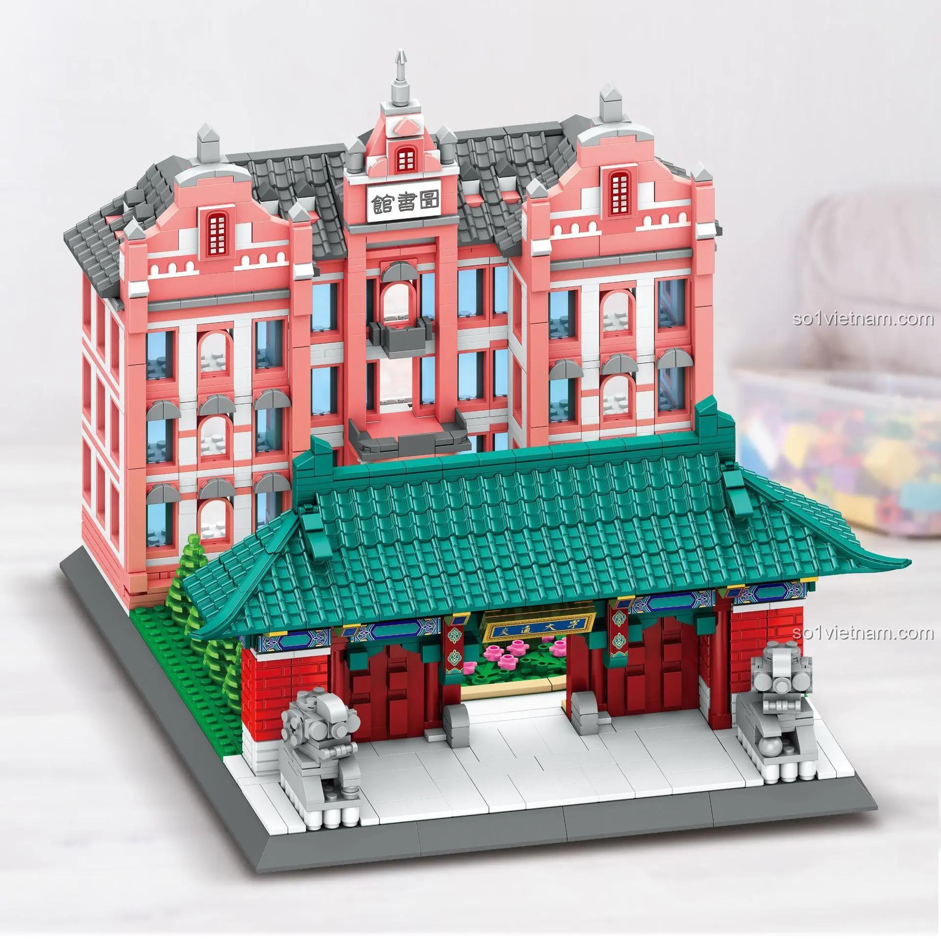 Bộ lắp ghép MingDi K3032 gây ấn tượng mạnh mẽ với thiết kế mô phỏng chi tiết và chân thực các công trình kiến trúc của Đại học Giao thông Thượng Hải. Tông màu hồng chủ đạo kết hợp với mái ngói xanh lá tạo nên vẻ đẹp hài hòa, cổ điển nhưng không kém phần sang trọng. Các chi tiết như cửa sổ, ban công, mái vòm, và các họa tiết trang trí đều được tái hiện một cách tinh xảo, mang đến cái nhìn cận cảnh về phong cách kiến trúc độc đáo của ngôi trường.