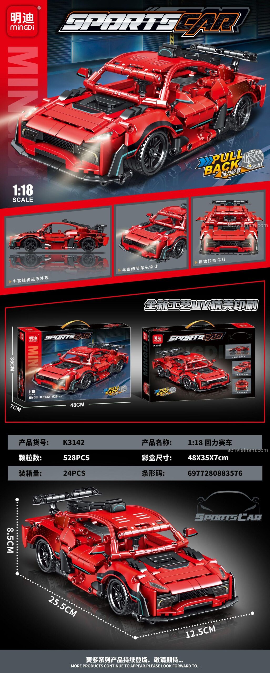 Bộ Lắp Ghép Mingdi K3142 Xe Đua Thể Thao Kéo Lùi (528 Mảnh) – Tốc Độ Kinh Hoàng và Động Cơ Kéo Lùi