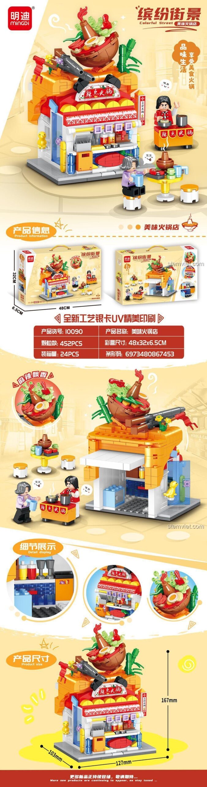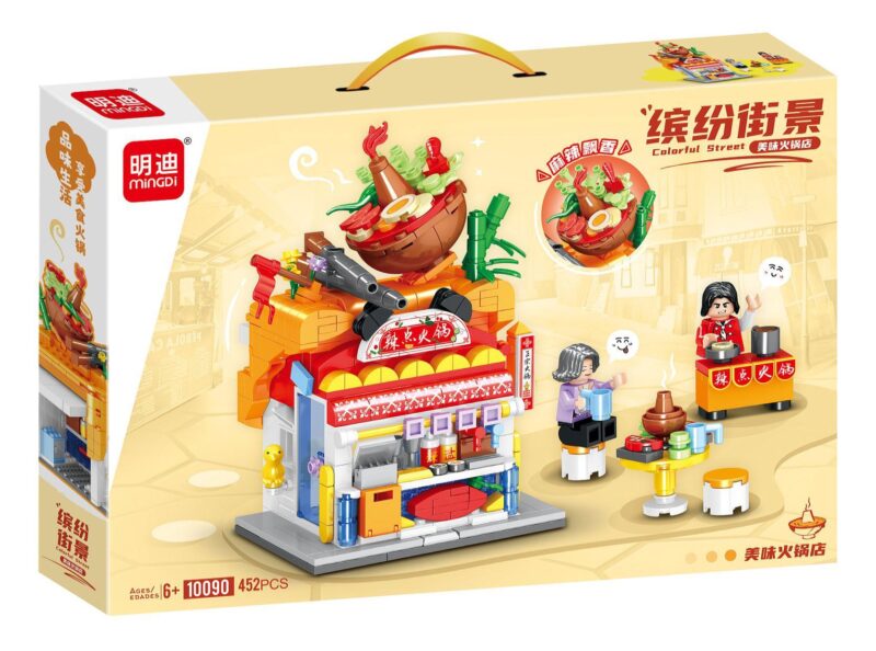 Bộ lắp ghép Mingdi Leibao 10090 Cửa hàng Lẩu Ngon Phố Sắc Màu (452 mảnh ghép) – Phố Ẩm Thực Sôi Động và Cửa hàng Lẩu Độc Đáo
