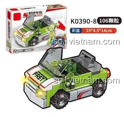 Bộ lắp ghép minGDi K0390 Robot Biến Hình gây ấn tượng mạnh mẽ với thiết kế chi tiết và khả năng biến đổi linh hoạt. Sản phẩm bao gồm 8 chiếc xe đua riêng biệt, mỗi chiếc mang một màu sắc chủ đạo nổi bật như đỏ, xanh dương, xanh lá, vàng, trắng và đen, tạo nên một đội xe đa dạng và bắt mắt. Mỗi chiếc xe đều được thiết kế tỉ mỉ, mô phỏng chân thực các dòng xe đua, xe bán tải, xe SUV với kích thước nhỏ gọn, dễ dàng cầm nắm và chơi. Điểm nhấn đặc biệt là khả năng hợp thể của 8 chiếc xe này để tạo thành một Robot Cơ Giáp Tốc Độ cao khoảng 20cm, rộng 15cm và dài 10cm. Robot có dáng vẻ mạnh mẽ, oai vệ với các khớp nối linh hoạt, cho phép bé tạo ra nhiều tư thế chiến đấu khác nhau. Đặc biệt, các chi tiết đèn LED được tích hợp trên mỗi chiếc xe và cả robot khi hợp thể, mang đến hiệu ứng ánh sáng sống động, tăng thêm phần hấp dẫn cho mỗi cuộc phiêu lưu. Đây thực sự là một đồ chơi lắp ráp K0390 Robot Biến Hình được chăm chút từng chi tiết, hứa hẹn mang lại những giờ phút giải trí và sáng tạo không ngừng.