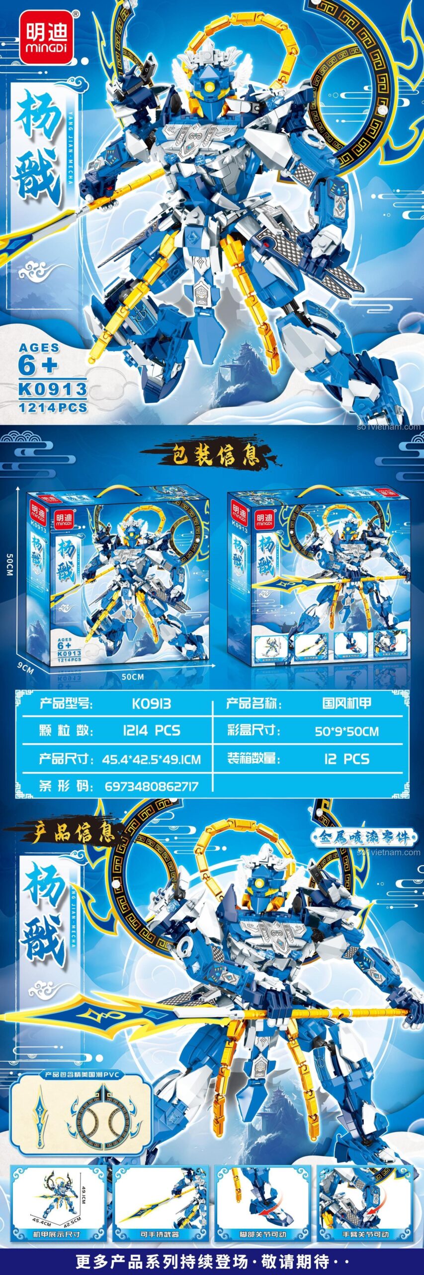Bộ lắp ghép Mingdi Leibao K0913 Mecha Dương Tiễn (1214 mảnh ghép) – Sức Mạnh Thần Thoại và Khớp Nối Linh Hoạt