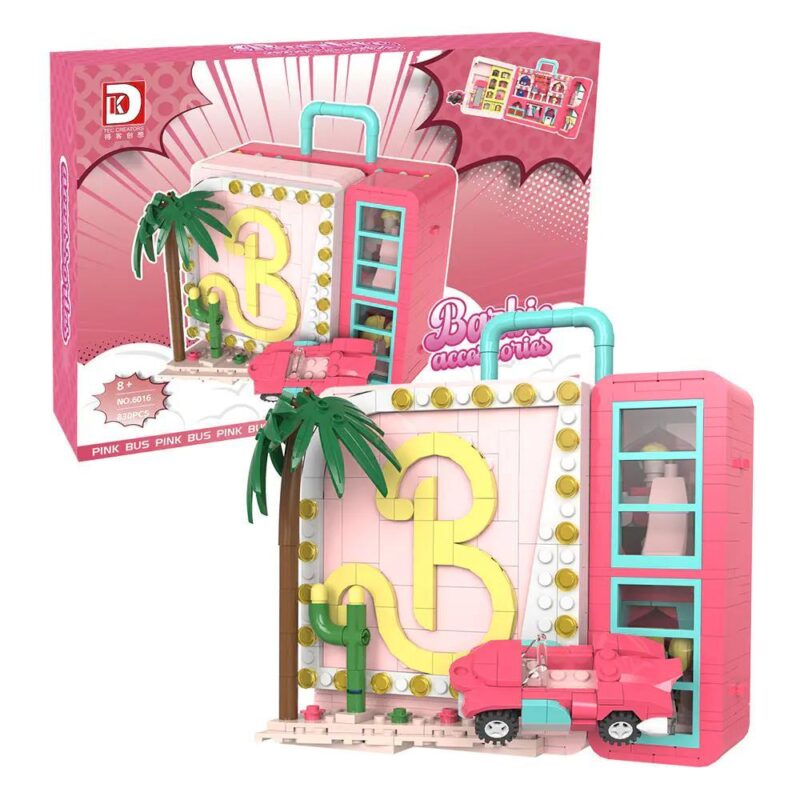 Điểm nhấn độc đáo của bộ lắp ghép DK 6016 chính là thiết kế 2 trong 1 vô cùng tiện lợi và sáng tạo. Khi gấp lại, sản phẩm trông như một chiếc vali thời trang màu hồng pastel, có tay cầm và bánh xe, giúp bé dễ dàng mang theo đến bất cứ đâu. Nhưng điều kỳ diệu sẽ xảy ra khi bé mở chiếc vali này ra: một không gian tủ quần áo thu nhỏ đầy màu sắc sẽ hiện ra, mô phỏng chân thực các ngăn kéo, kệ đựng đồ, cùng với một chiếc xe hơi hồng xinh xắn. Bé có thể thỏa sức sắp xếp, trang trí và tạo ra những câu chuyện thời trang thú vị.