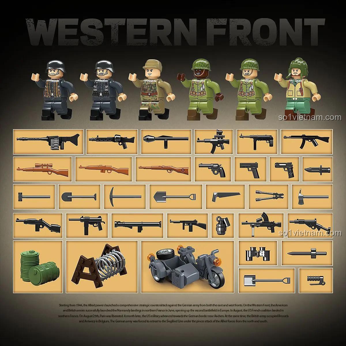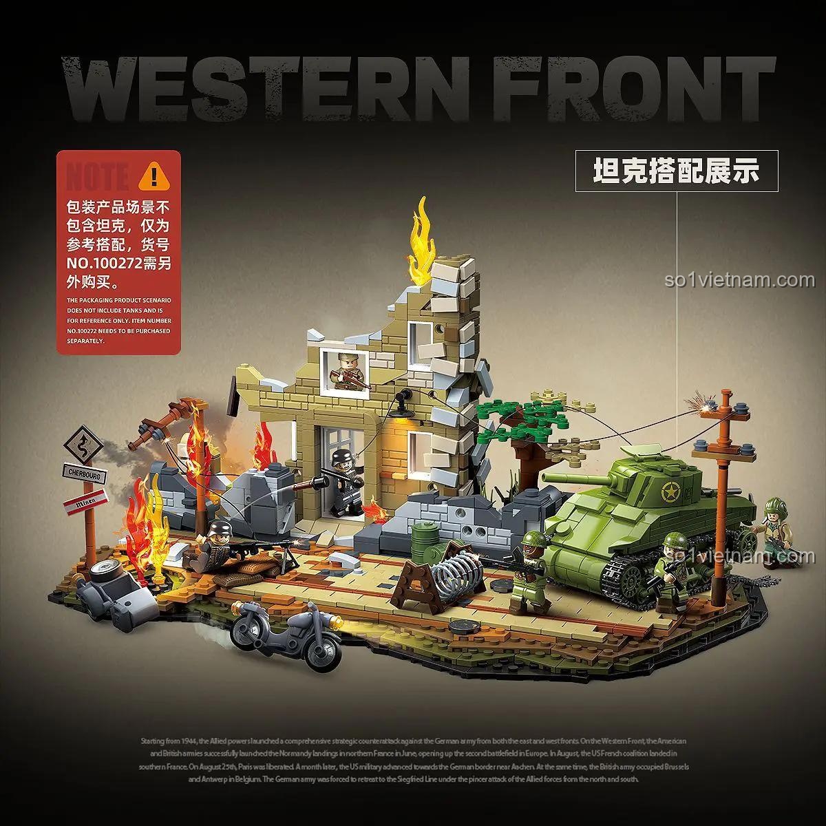 Màu sắc chủ đạo là nâu, xám, xanh lá và trắng, tạo nên một không gian chiến trường chân thực, nhuốm màu thời gian và khói lửa. Các mảnh ghép được làm từ nhựa ABS cao cấp, đảm bảo độ bền màu, độ khít cao và an toàn tuyệt đối cho sức khỏe của bé.