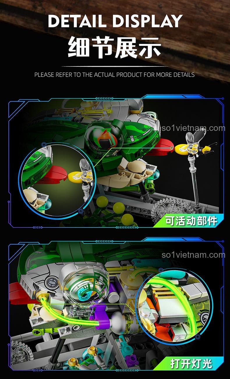 • Màu Sắc Bắt Mắt: Sự kết hợp hài hòa giữa các tông màu xanh lá, xám và bạc tạo nên vẻ ngoài mạnh mẽ, hiện đại và thu hút cho mô hình.