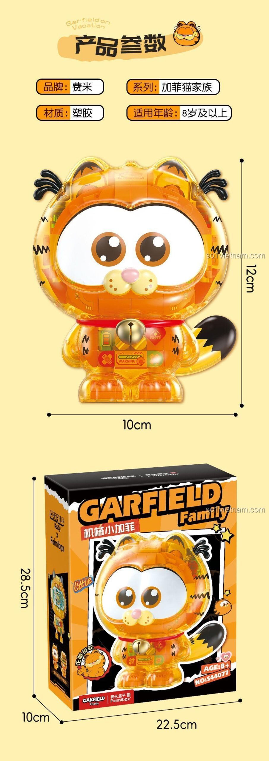 Mang chú mèo Garfield yêu thích của bạn vào một phiên bản hoàn toàn mới với Bộ Lắp Ghép Mô Hình Garfield Cơ Khí Nhỏ Femibox S44077! Với 345 mảnh ghép chi tiết, bộ đồ chơi này không chỉ mang đến giờ phút giải trí sáng tạo mà còn tạo ra một mô hình Garfield độc đáo với thiết kế trong suốt, để lộ các bộ phận cơ khí tinh xảo bên trong. Thêm vào đó, hiệu ứng đèn LED sẽ làm mô hình thêm phần sinh động và thu hút. Đây là món quà hoàn hảo cho các fan của Garfield, những người yêu thích lắp ráp và khám phá cơ chế hoạt động. Chất liệu nhựa ABS cao cấp đảm bảo an toàn và độ bền, phù hợp cho trẻ từ 8 tuổi trở lên. Khám phá sự kết hợp giữa nét đáng yêu của Garfield và sự tinh tế của cơ khí ngay hôm nay!