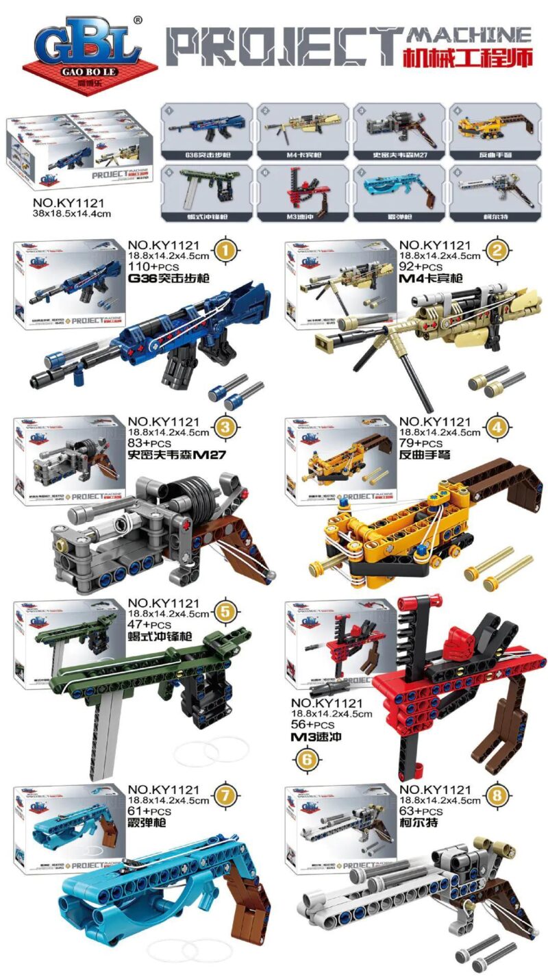 Bộ lắp ghép GBL KY1121 cho phép bé lắp ráp được tới 8 mẫu vũ khí khác nhau, mang đến sự đa dạng và hứng thú khi chơi.