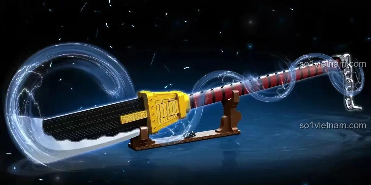 - Màu sắc sống động: Sự kết hợp hài hòa giữa các tông màu đen, vàng, đỏ và trắng tạo nên một thanh gươm mạnh mẽ, uy lực và đầy cuốn hút, phản ánh đúng tinh thần của vũ khí gốc trong One Piece.