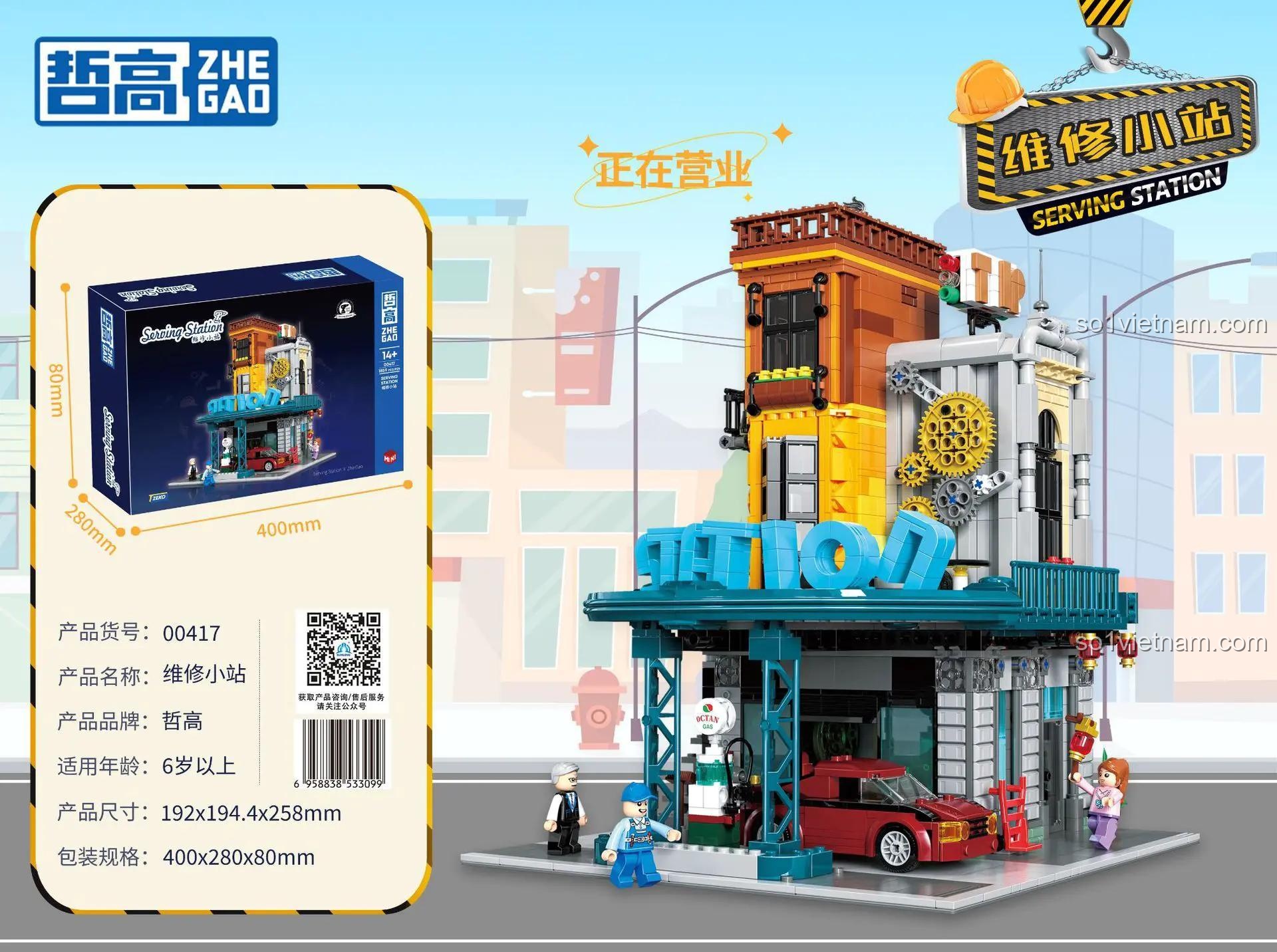 Bộ lắp ghép Zhe Gao 00417 Trạm Dịch Vụ bao gồm 1859 mảnh ghép chi tiết.