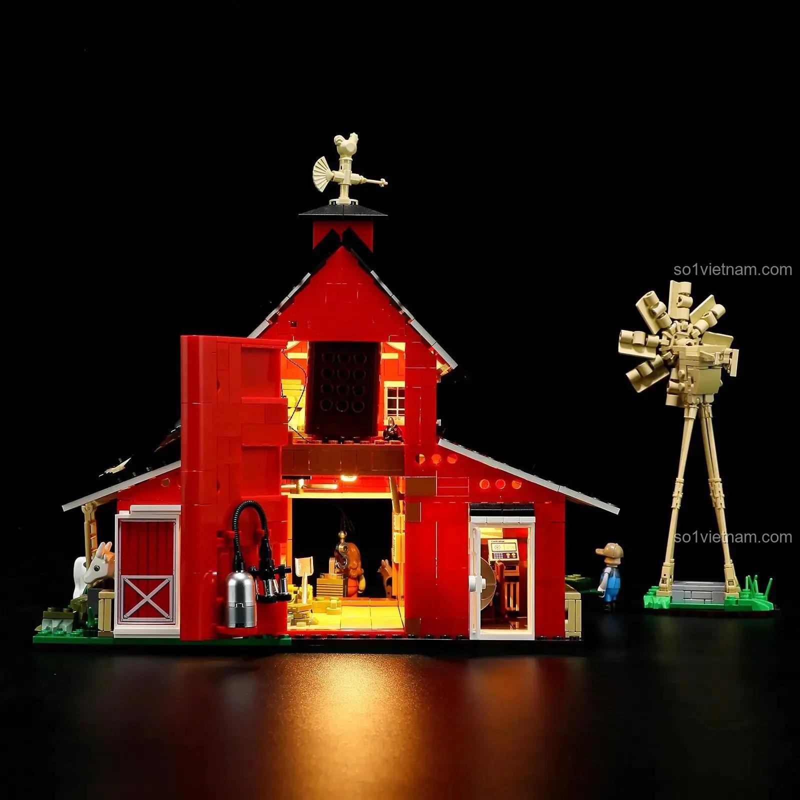 - Đèn LED chiếu sáng: Điểm nhấn đặc biệt của bộ mô hình là hệ thống đèn LED được tích hợp sẵn, giúp chiếu sáng nội thất trang trại, tạo nên một không gian ấm áp và lung linh vào ban đêm. Điều này làm cho mô hình trở nên sống động và thu hút hơn bao giờ hết.