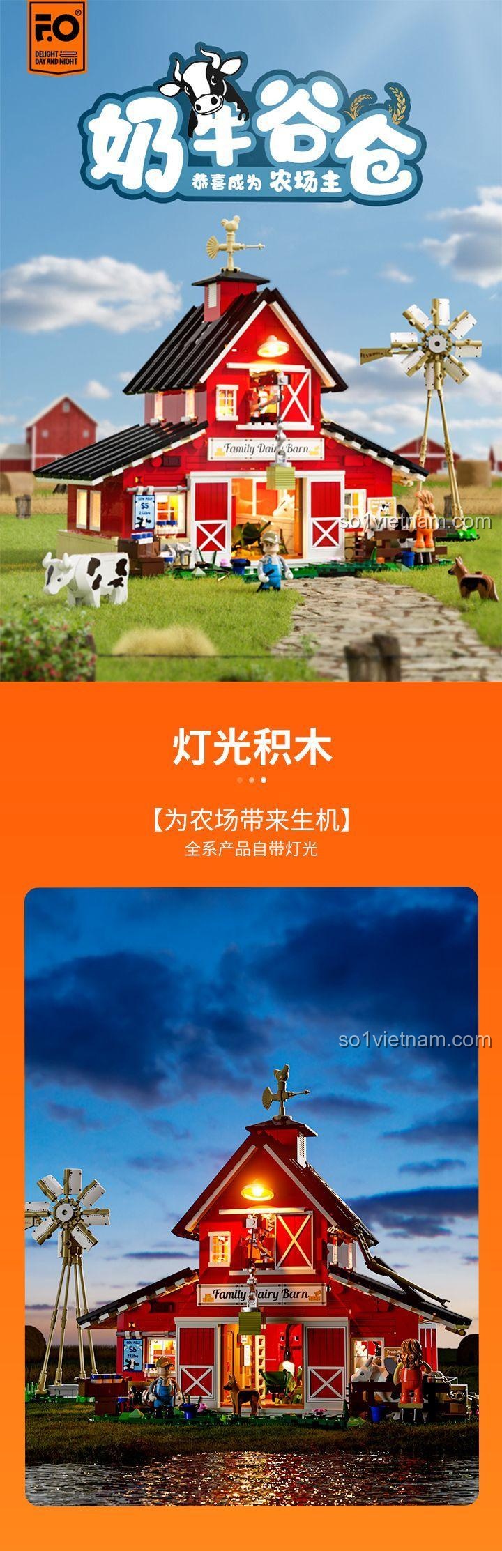 Trang Trại Bò Sữa Gia Đình Funwhole F9037 nổi bật với thiết kế tinh xảo, tỉ mỉ đến từng chi tiết, mang đến một cái nhìn chân thực về cuộc sống nông trại.