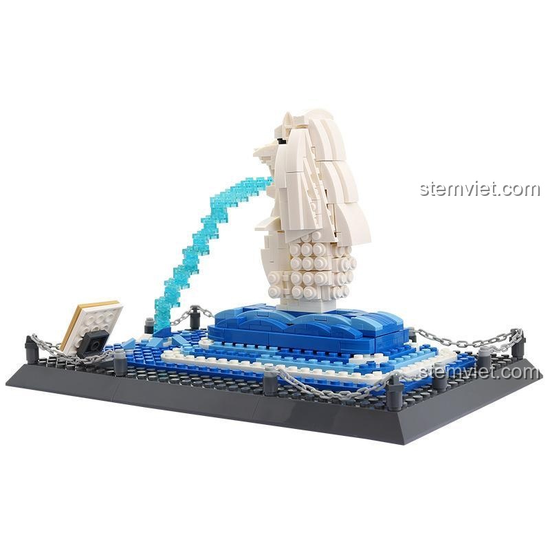 Bộ lắp ghép WANGE 4218 tái hiện sống động Tượng Sư tử Biển Singapore với độ chính xác cao. Từ phần thân sư tử uy nghi đến phần đuôi cá duyên dáng, mỗi chi tiết đều được thiết kế tỉ mỉ, mang đến trải nghiệm lắp ráp thú vị và kết quả cuối cùng đầy ấn tượng. Mô hình còn có chi tiết phun nước màu xanh trong suốt, tạo cảm giác chân thực và sinh động, như thể bạn đang chiêm ngưỡng kỳ quan này ngay tại Vịnh Marina.