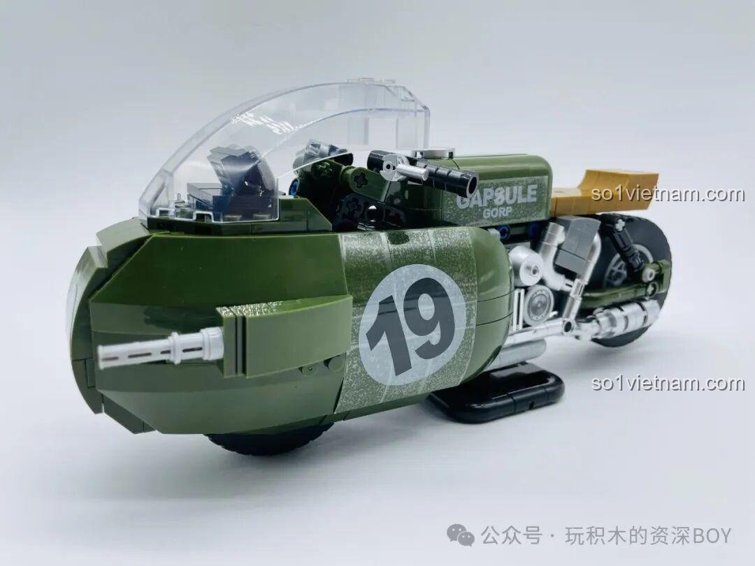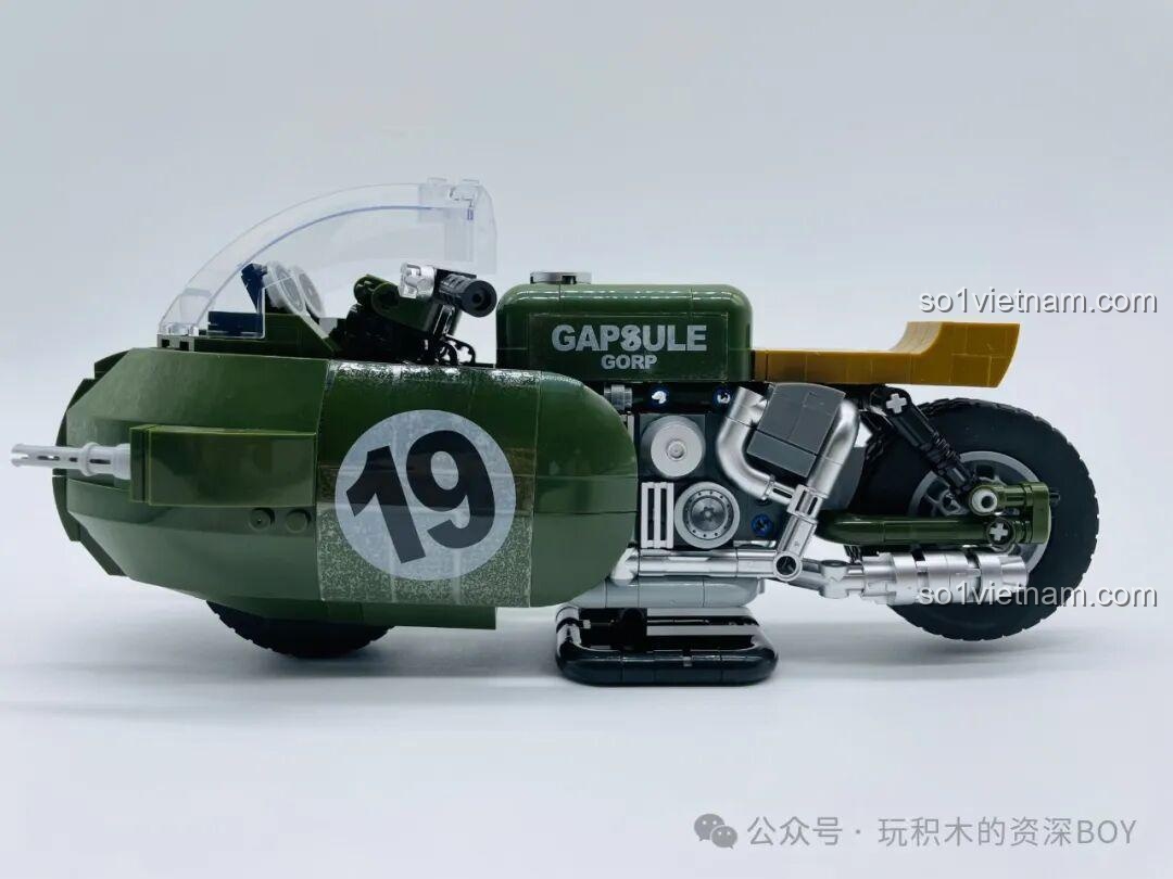 - Chi tiết chân thực: Từ phần đầu xe khí động học, bình xăng “CAPSULE CORP” đặc trưng, đến động cơ phức tạp và bánh xe gai góc, mọi chi tiết đều được mô phỏng một cách sống động.