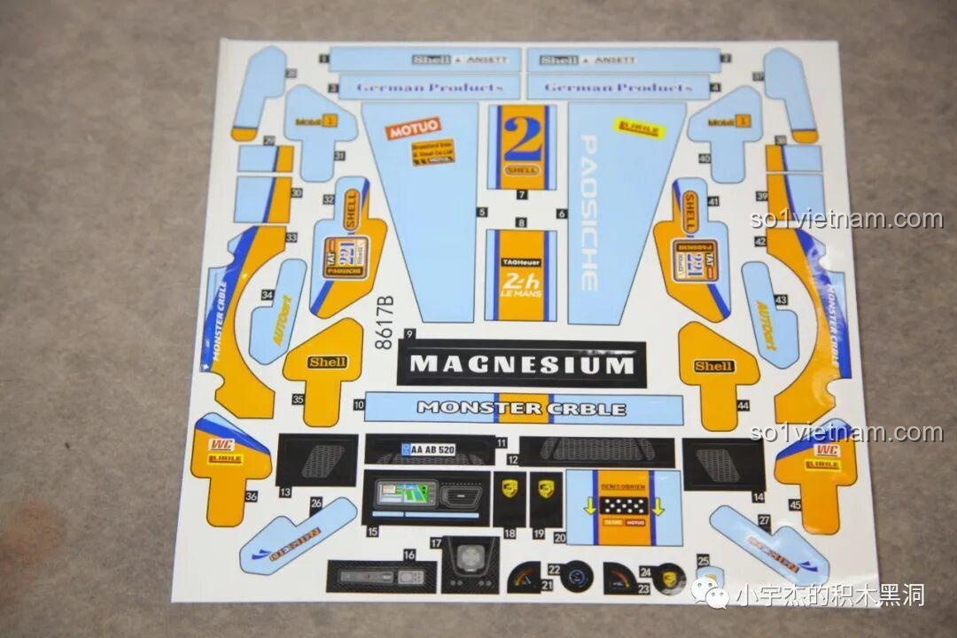 - Hai phiên bản lắp ráp: Bộ sản phẩm đi kèm hai bộ decal dán khác nhau, cho phép bạn tùy chọn lắp ráp và trang trí chiếc Porsche 911 của mình theo hai phong cách riêng biệt, tăng thêm sự thú vị và cá tính cho mô hình.