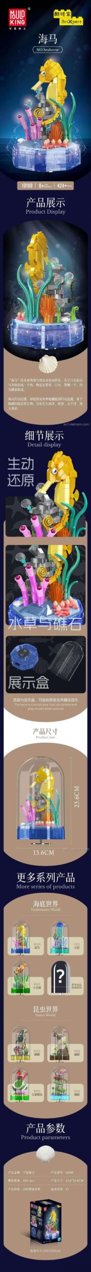 Chào mừng bạn đến với thế giới đại dương đầy mê hoặc, nơi những giai điệu du dương của biển cả hòa quyện cùng sự sáng tạo không giới hạn! Nếu bạn đang tìm kiếm một món quà độc đáo, vừa mang tính giải trí vừa giáo dục cho cô công chúa nhỏ của mình, thì bộ lắp ghép Mould King 10100 Hộp nhạc Hải mã Thế giới dưới biển chính là lựa chọn hoàn hảo. Đây không chỉ là một bộ đồ chơi lắp ráp thông thường, mà còn là một tác phẩm nghệ thuật thu nhỏ, mang cả một góc đại dương lung linh về căn phòng của bé.