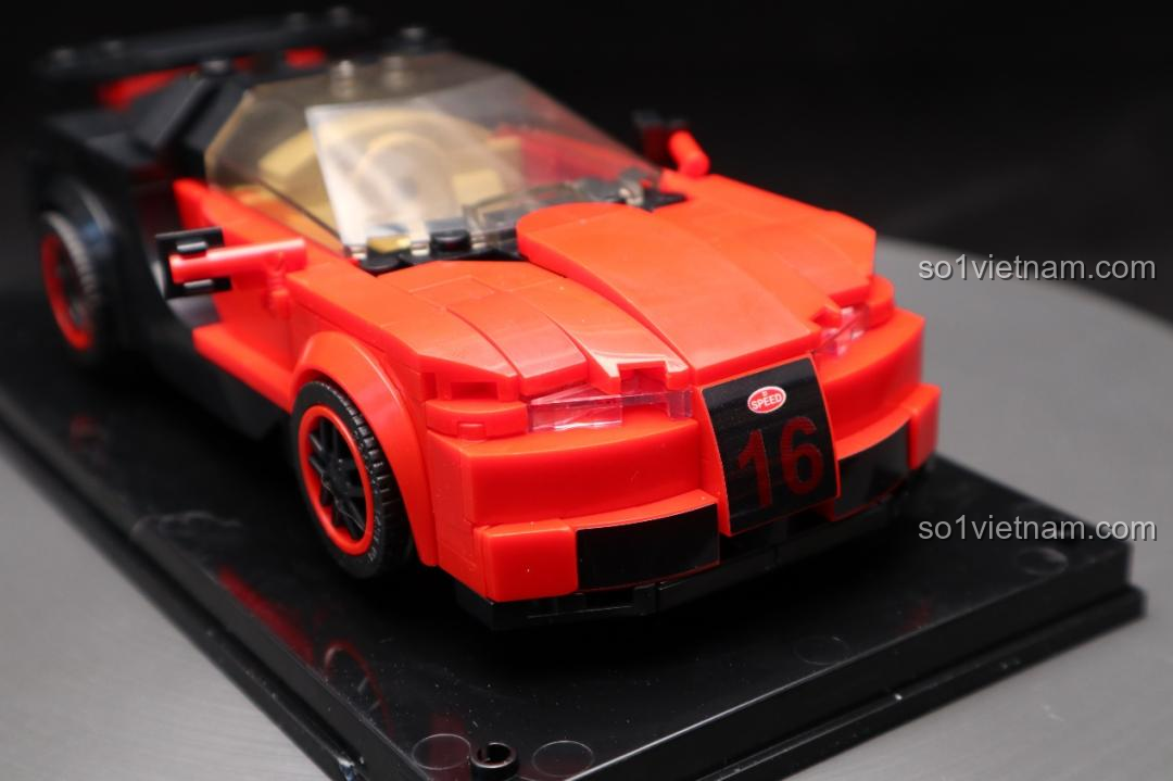 Bộ đồ chơi 27027 Siêu xe Bugatti Veyron của Mould King gây ấn tượng mạnh mẽ ngay từ cái nhìn đầu tiên với thiết kế tinh xảo và độ hoàn thiện cao. Mô hình này tái hiện chân thực những đường nét khí động học đặc trưng của Bugatti Veyron, từ lưới tản nhiệt hình móng ngựa đặc trưng cho đến phần đuôi xe mạnh mẽ. Với màu sắc chủ đạo là Đỏ và Đen, chiếc xe toát lên vẻ đẹp thể thao, mạnh mẽ và đầy cuốn hút, đúng như tinh thần của một siêu xe thực thụ.