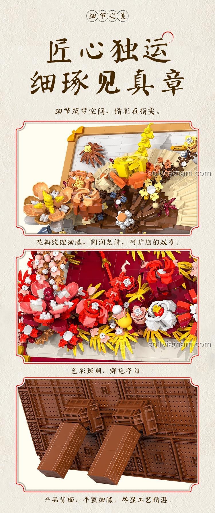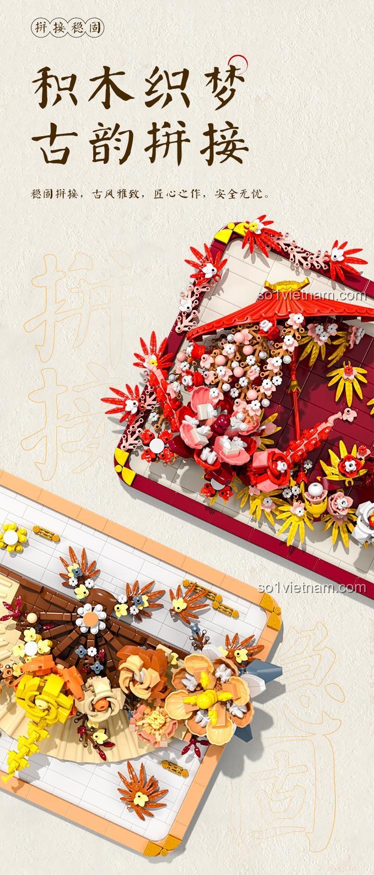 Bộ lắp ghép Tranh Lắp Ghép 3D Hồng Tán Mạn Cuộn MY97148 là sự kết hợp hoàn hảo giữa nghệ thuật và kỹ thuật lắp ráp. Với kích thước mô hình 24cm chiều dài, 7.5cm chiều rộng và 16cm chiều cao, tác phẩm này có thể dễ dàng trưng bày trên bàn làm việc, kệ sách hoặc treo tường. Màu sắc chủ đạo là Đỏ rực rỡ, Vàng ấm áp, Trắng tinh khôi, Hồng dịu dàng và Nâu trầm ấm, tạo nên một tổng thể hài hòa và bắt mắt. Từng chi tiết nhỏ như cánh hoa, nan ô, hay họa tiết trên quạt đều được thiết kế tỉ mỉ, tái hiện chân thực vẻ đẹp của nghệ thuật truyền thống. Đặc biệt, các chi tiết dán decal tinh xảo càng làm tăng thêm sự sống động và chiều sâu cho bức tranh. Đây thực sự là một mô hình Tranh Phong Cảnh Trung Hoa không chỉ đẹp mắt mà còn chứa đựng nhiều giá trị văn hóa.