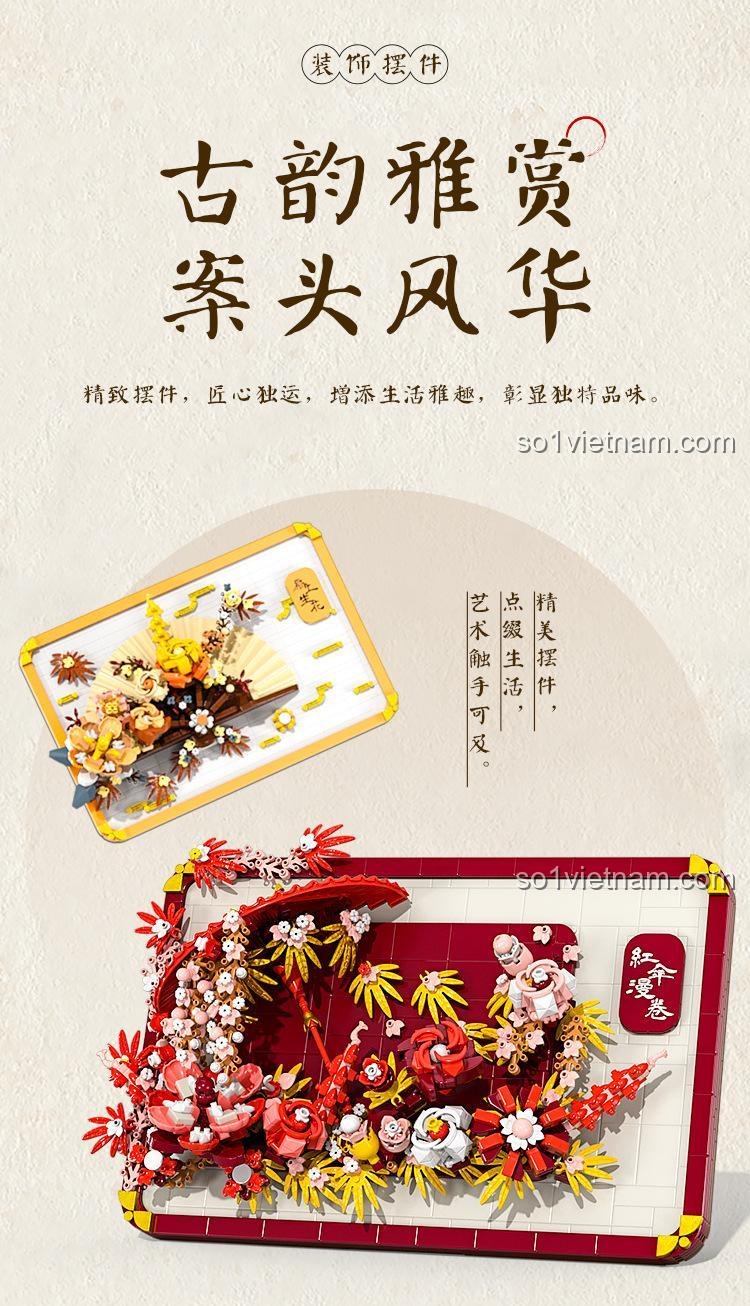 Chào mừng bạn đến với thế giới nghệ thuật đầy mê hoặc của bộ lắp ghép Tranh Cuộn 3D Phong Cách Trung Hoa: Hồng Tán Mạn Cuộn từ MOYU BLOCK MY97148! Được ra mắt vào năm 2024, tác phẩm này không chỉ là một bộ đồ chơi mô hình mà còn là một cánh cửa mở ra không gian văn hóa Trung Hoa cổ kính, nơi vẻ đẹp của chiếc ô đỏ truyền thống, quạt giấy thanh tao và những đóa hoa rực rỡ được tái hiện một cách sống động. Lấy cảm hứng từ những bức tranh cuộn thủy mặc và nghệ thuật dân gian, bộ xếp hình này mang đến một trải nghiệm lắp ghép độc đáo, giúp bé gái 8 tuổi và cả những người lớn yêu nghệ thuật đắm chìm vào sự tinh túy của phương Đông. Mỗi mảnh ghép là một phần của câu chuyện, mời gọi bạn khám phá và tạo nên một kiệt tác mang đậm dấu ấn cá nhân.