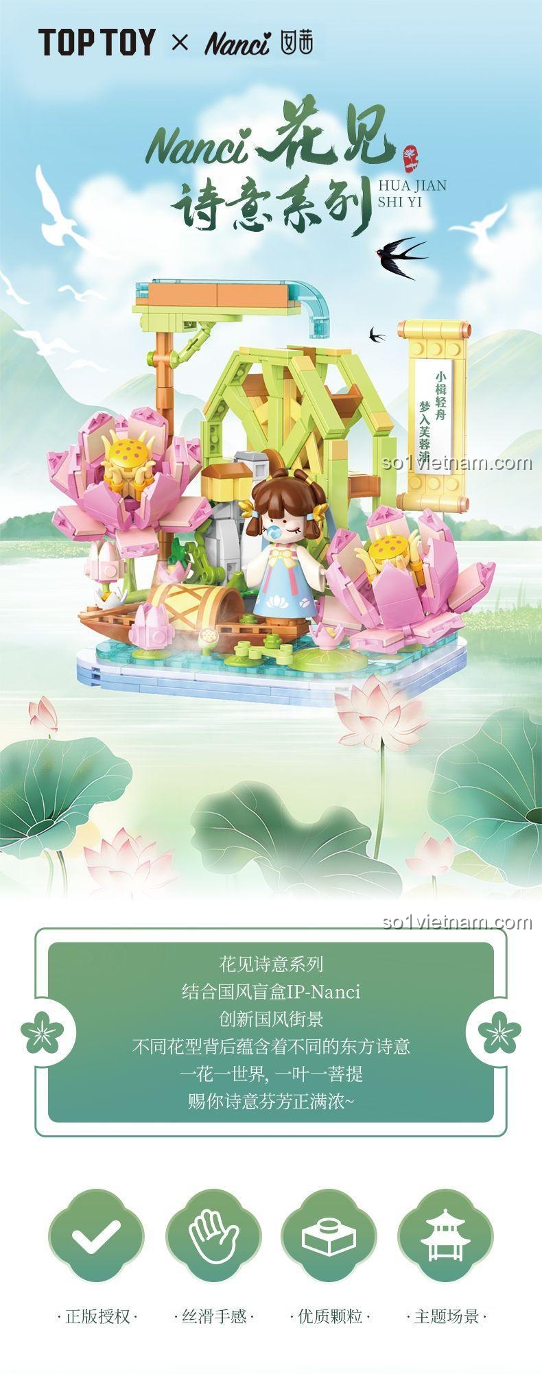Chào mừng bạn đến với thế giới mộng mơ của bộ lắp ghép Nanci Hoa Kiến Du Đình TC2042 từ TOP TOY! Bộ sản phẩm độc đáo này không chỉ mang đến những giờ phút giải trí sáng tạo mà còn là một cánh cửa mở ra vẻ đẹp cổ kính và thanh tao của văn hóa Trung Hoa. Với 500 mảnh ghép nhỏ xinh, bé yêu sẽ được hóa thân thành một nghệ nhân tài ba, tự tay xây dựng nên một không gian thơ mộng với những đóa hoa sen rực rỡ, kiến trúc lầu đài uy nghiêm và những chi tiết trang trí tinh xảo. Đây là món quà tuyệt vời để bé gái 8 tuổi phát triển tư duy, sự khéo léo và tình yêu với nghệ thuật.