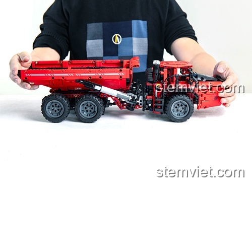 Không chỉ là một mô hình tĩnh, Xe Tải Ben CN373 ONEBOT OBLDQ18AIQI còn tích hợp nhiều tính năng cơ khí độc đáo, mang đến trải nghiệm chơi đầy tương tác. Mô hình được trang bị hệ thống treo độc lập trên từng bánh xe, cho phép xe di chuyển linh hoạt trên nhiều loại địa hình, mô phỏng chân thực khả năng vượt chướng ngại vật của xe công trình. Hệ thống lái bánh trước giúp điều hướng dễ dàng, tăng cường khả năng điều khiển. Đặc biệt, cơ chế đổ ben hoạt động linh hoạt, cho phép bạn nâng hạ thùng xe để mô phỏng quá trình vận chuyển và đổ vật liệu. Bên trong, động cơ 6 xi lanh được mô phỏng chuyển động, mang lại cảm giác chân thực như một cỗ máy thực thụ. Mô hình còn có thiết kế mô-đun tách rời giữa đầu kéo và thùng ben, tăng thêm tính linh hoạt và khả năng tùy biến. Hơn nữa, bộ lắp ghép này còn có khả năng nâng cấp điều khiển từ xa, biến chiếc Xe Vận Chuyển Đất Đá CN373 OBLDQ18AIQI của bạn thành một chiếc xe RC mạnh mẽ, mở ra vô vàn kịch bản chơi mới lạ.