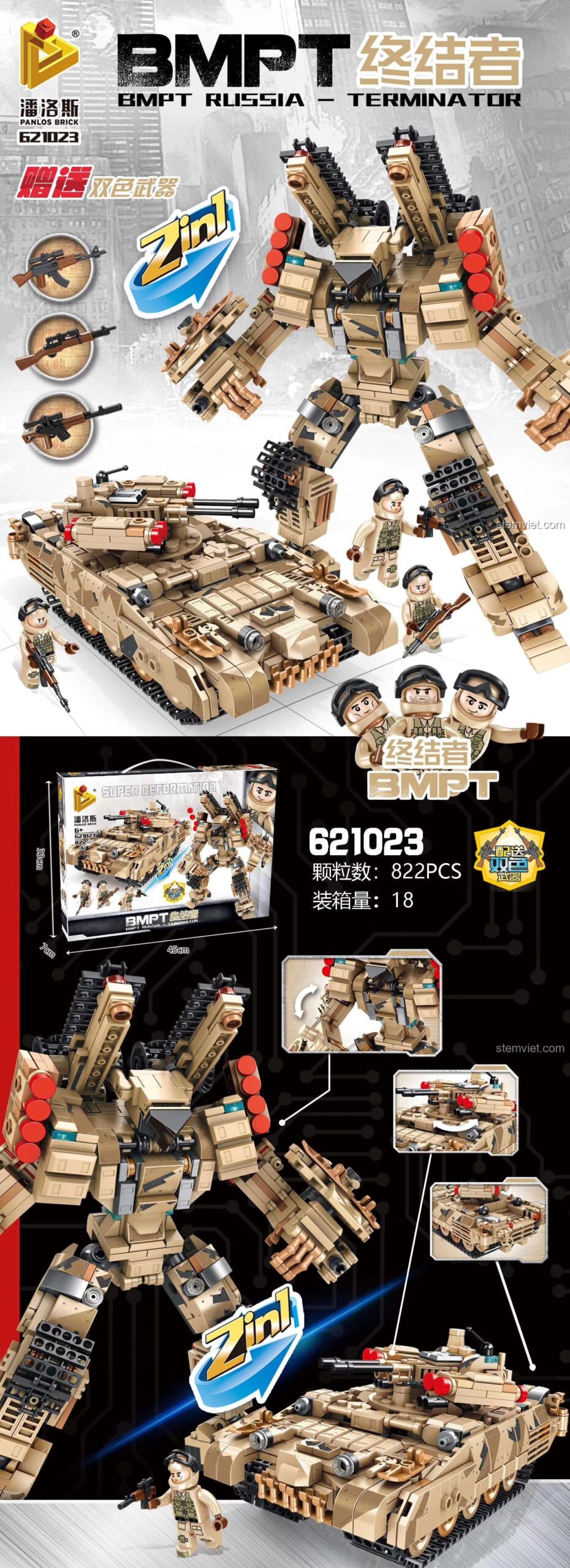 Bộ lắp ghép Panlos Brick 621023 Mô Hình Xe Tăng Robot Biến Hình BMPT Terminator (822 mảnh ghép) – Biến Hình Mạnh Mẽ & 2 Trong 1