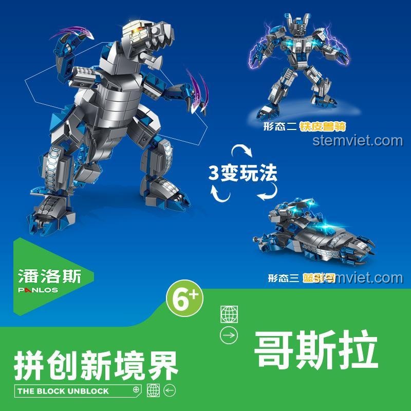 Bộ lắp ghép Robot chiến đấu này bao gồm 4 mô hình quái thú cơ khí độc đáo: Godzilla, Hổ Răng Kiếm, Voi Ma Mút và Bọ Cạp. Mỗi mô hình đều có khả năng biến hình thành 3 dạng khác nhau (quái thú, robot, phương tiện), mang lại tổng cộng 12 trải nghiệm lắp ráp và chơi đa dạng cho bé trai 6 tuổi.